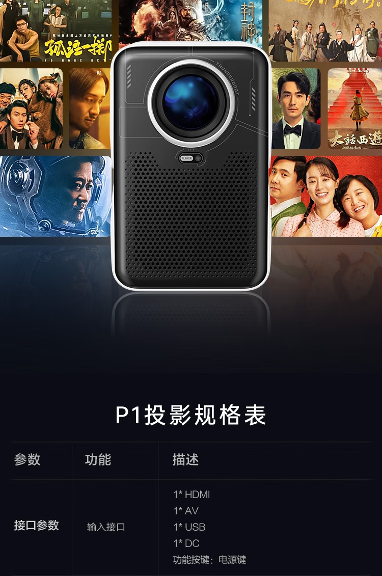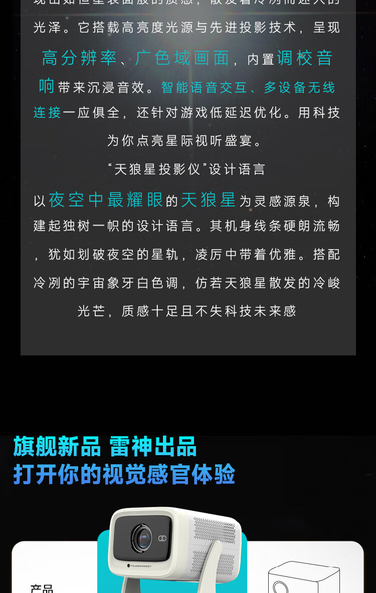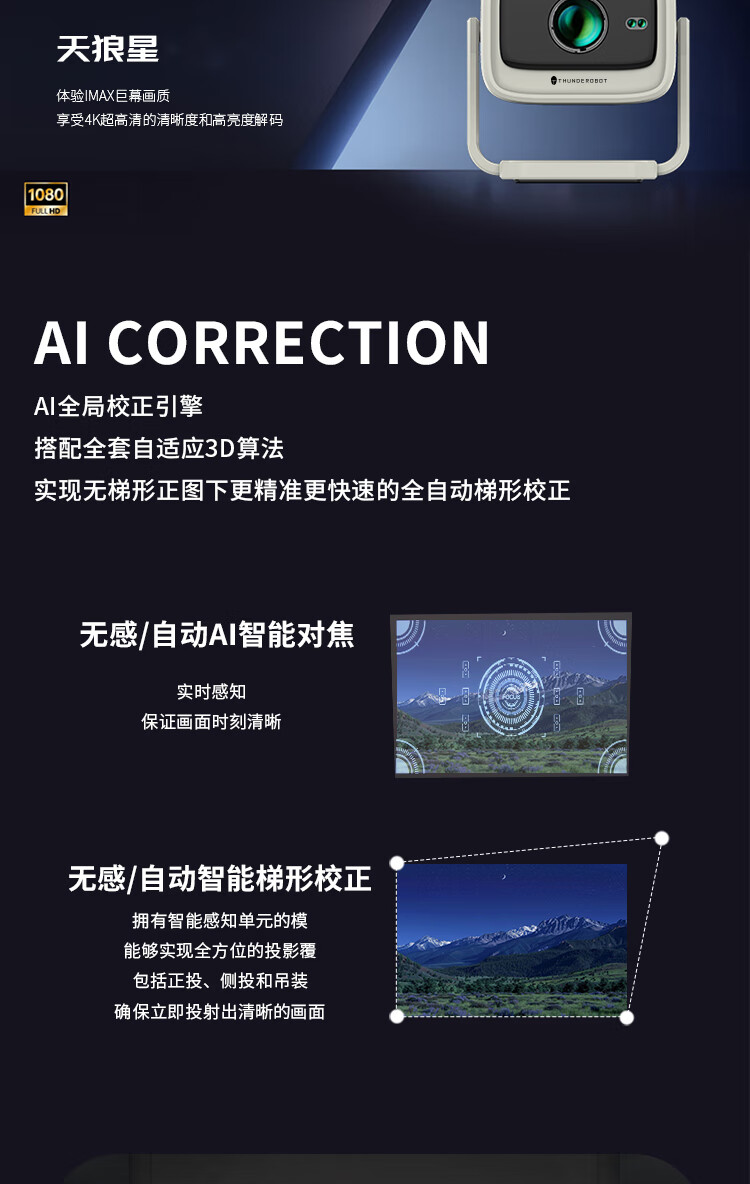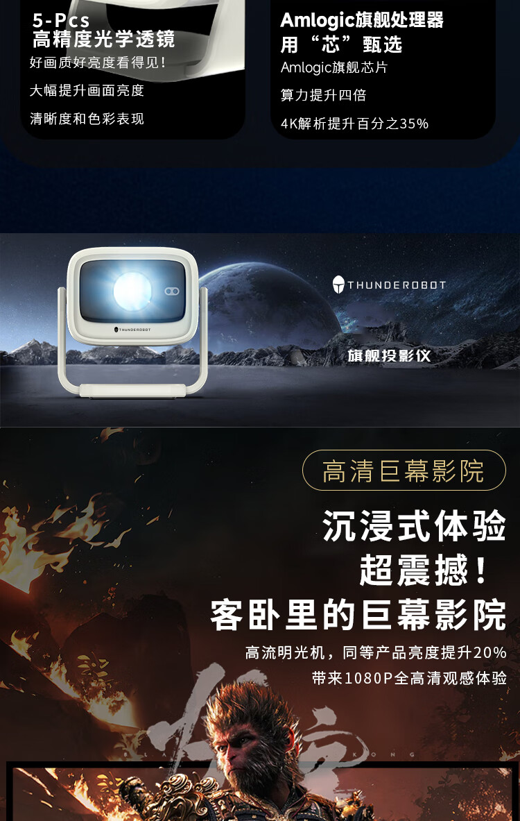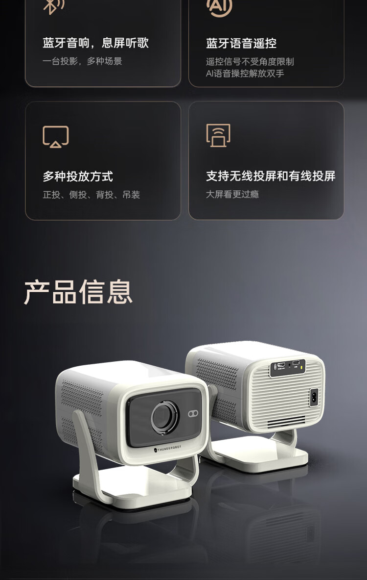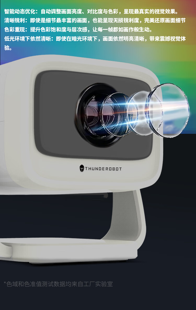 ThundeRobot投影仪家用家庭影院4K超高清投影白天直投办公会议投影仪教学培训卧室投影一体机手机投屏 雷神P1-全自动智能调节-4K解码