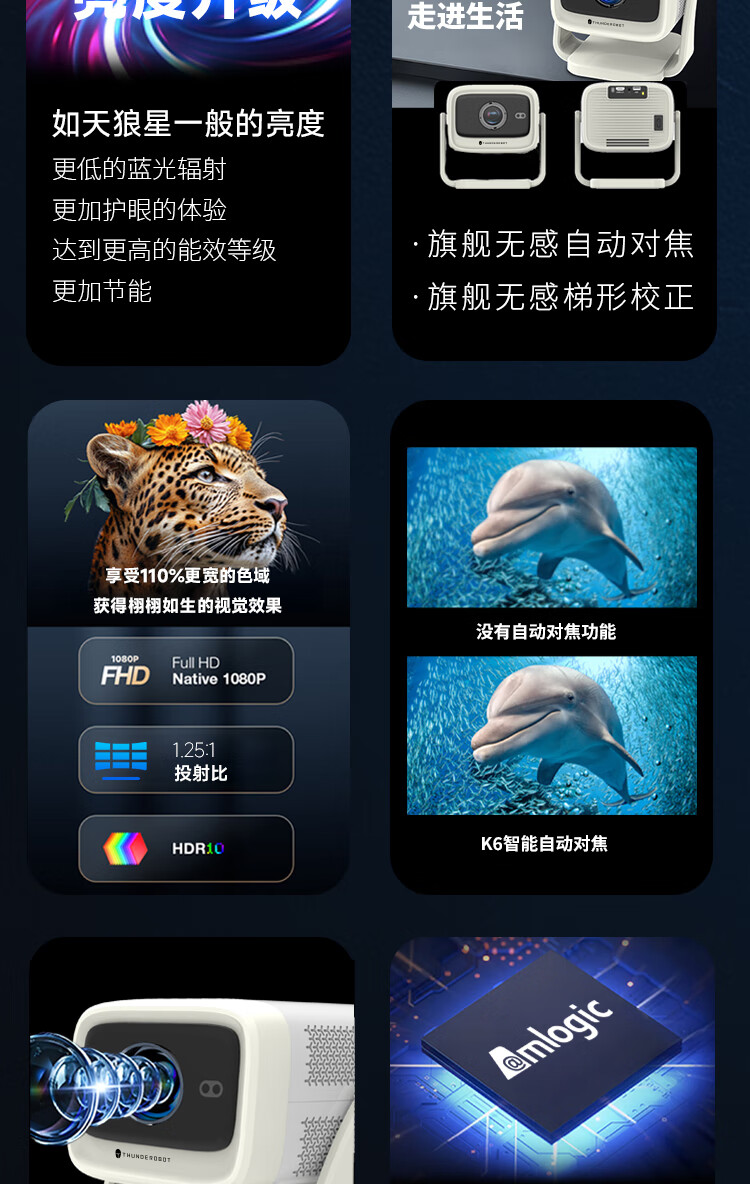 雷神Thunderobot/TOF自动智能K6超高清高亮1080P投影机卧室 【雷神】全新首发K6系 普通版(需外接其他设备)