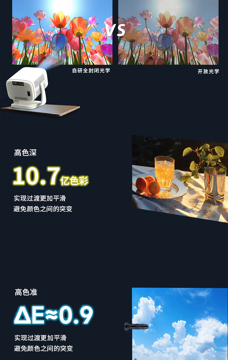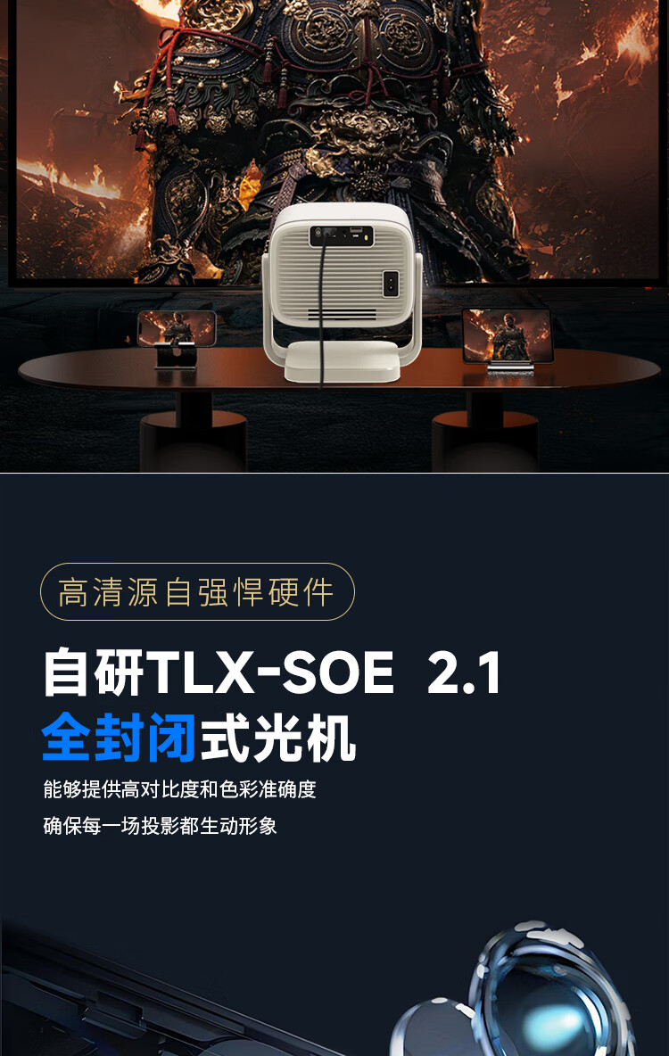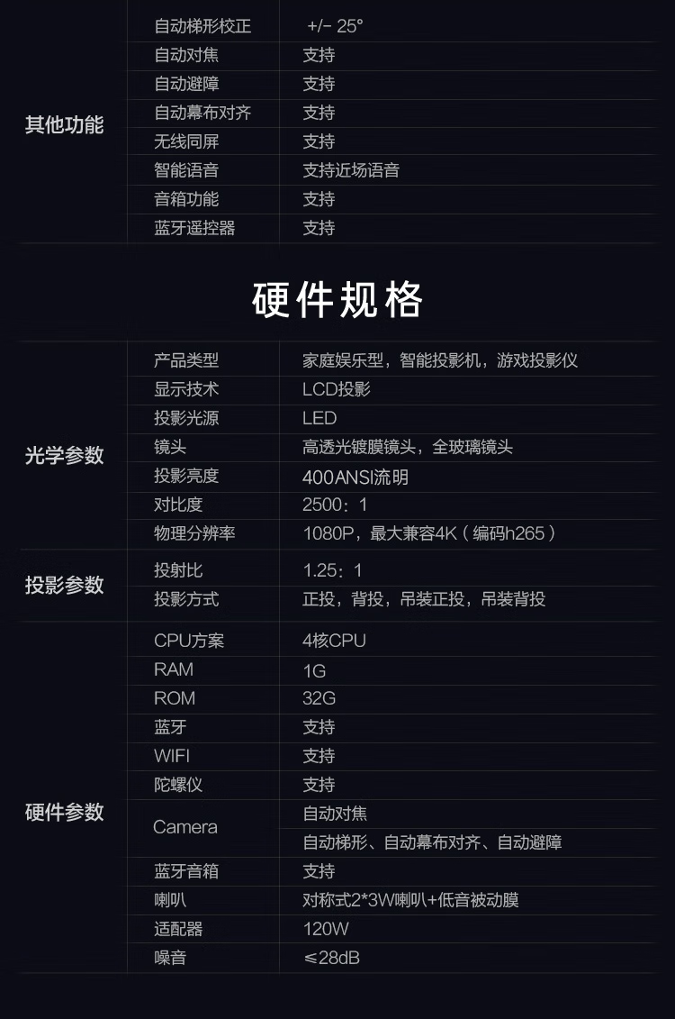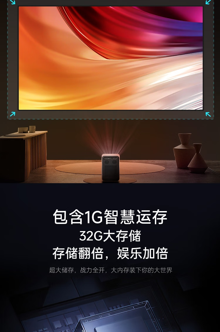 这款投影仪的智能系统太好用了,能下载各种App,听歌追剧都能用,还有内置扬声器发声,根本不用连别的设备,清晰度也很棒,在卧室看电影简直是享受,最方便的是自带旋转支架,想投哪里就转到哪里,四角矫正轻松调正画面,手机投屏也秒连,实在太好用了