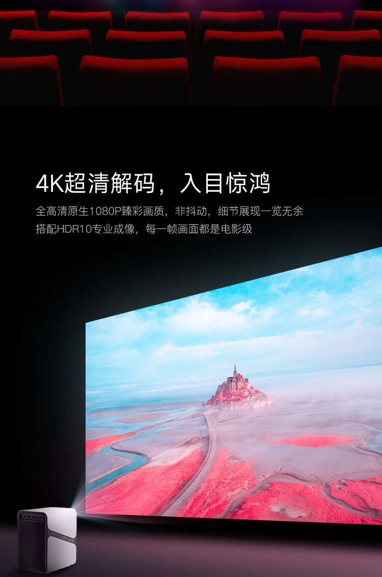 终于不用再凑着手机屏幕看剧了!手机投屏功能超好用,常看的爱奇艺腾讯都能轻松投,还不会影响我手机的正常使用,画面特别大,清晰度很高,不会累眼睛,在家就能享受影院级体验,外观很好看,实物也不大,不用安装,放茶几柜子上就能用