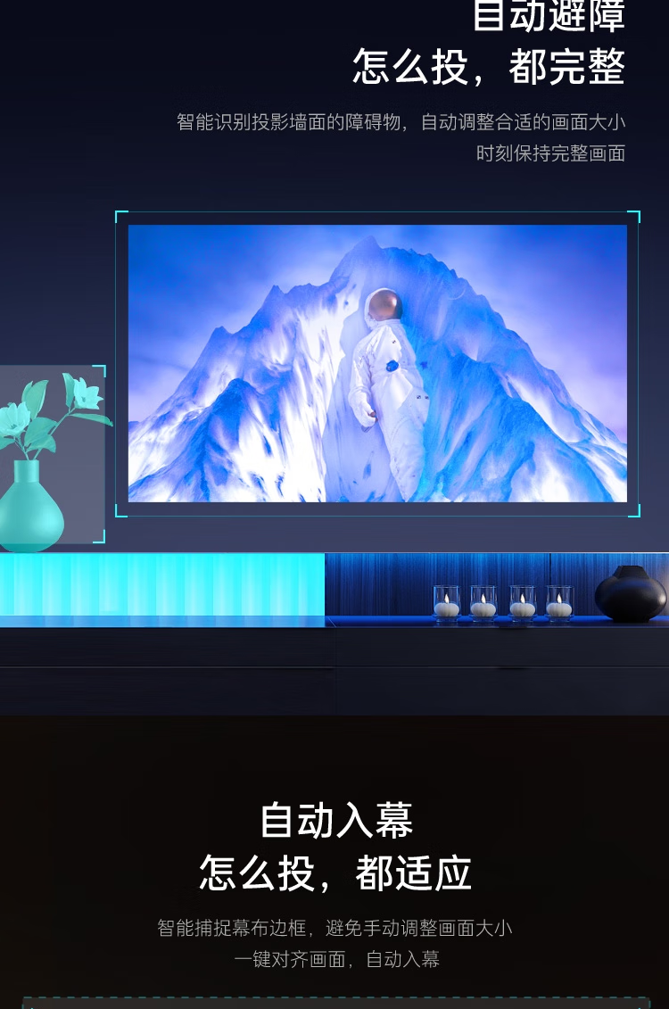 对我这种电子小白来说,这台投影仪真的太友好了,开机后用遥控器就能调对焦和梯形校正,想看的节目直接用语音搜索,不需要复杂操作,画面大小可以随意调节,放在客厅能投出影院般的效果,有时候需要连接电脑电脑也很方便,插线连接上就能把电脑画面投出来,功能多样操作简单,用着很满意