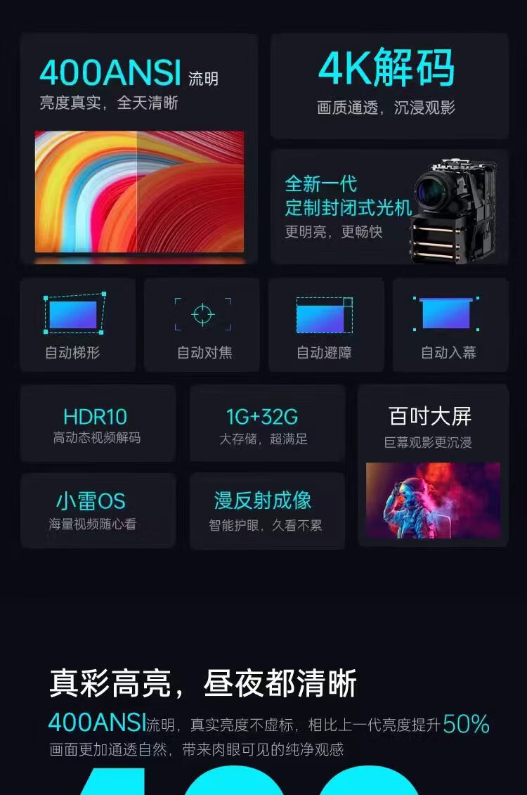 画面丝滑无延迟,体验感拉满,画面很高清,不管是白天拉窗帘还是晚上关灯,画面都很通透,白天稍微没那么亮,白墙直接投都不用买幕布,系统运行流畅