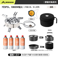 北山狼户外分体式卡式炉 露营便携防爆防风猛火炉折叠野营煮茶燃气灶 白色猛火七星炉+B3套锅【赠-气罐*4】