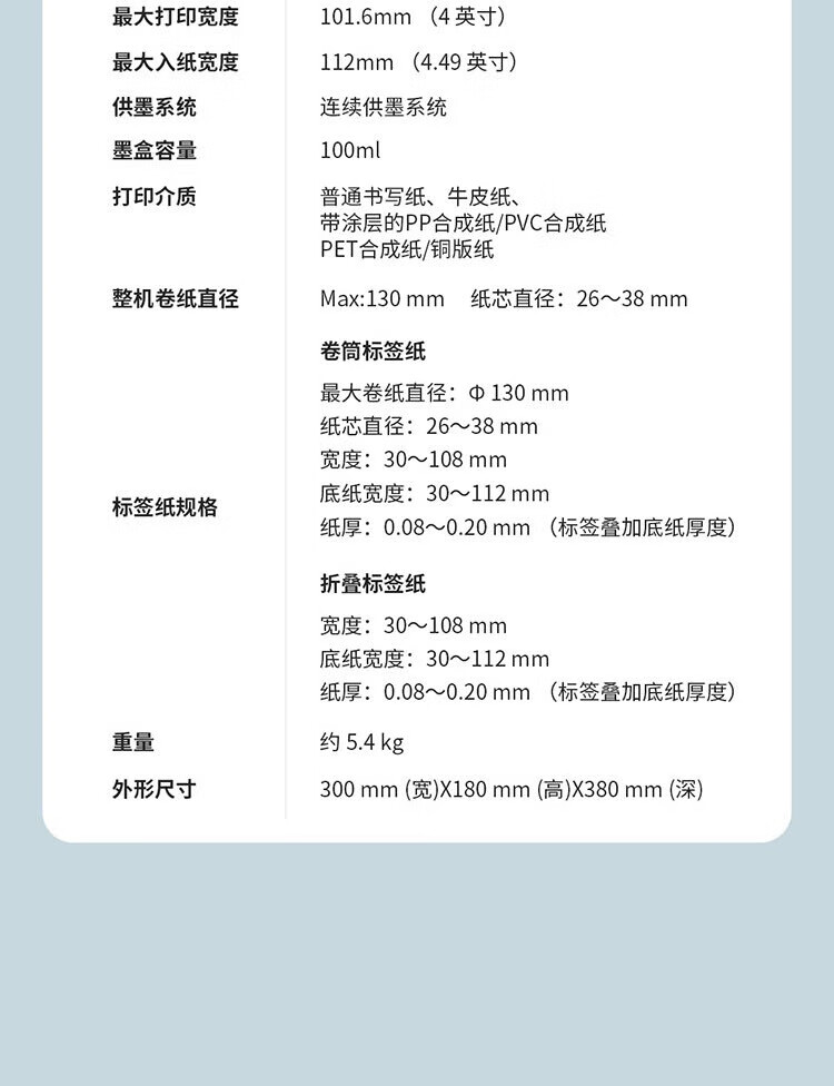 注意:此款是属于喷墨映美云标签打印机,新品上市预定商品,产品拆封使用及安装不支持7天无理由退换,相关参数信息以官方网站为准,详细信息咨询客服,谢谢理解~