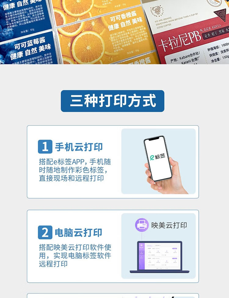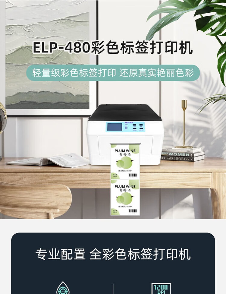 映美ELP-480彩色标签喷墨打印机 手机/电脑远程打印食品商品多种标签 喷墨涂层不干胶打印 ELP-480W【彩色标签远程打印机】