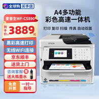 爱普生WF5890彩色喷墨不干胶打印机复印扫描一体机无线双面高速办公5390 欧版WF5890(高速多功能一体机) 套餐一[填充墨盒 500ml墨水4瓶]