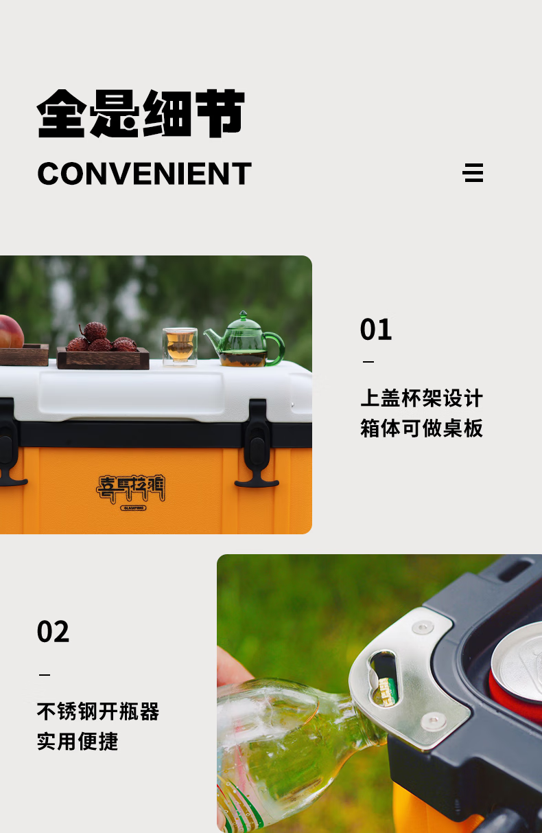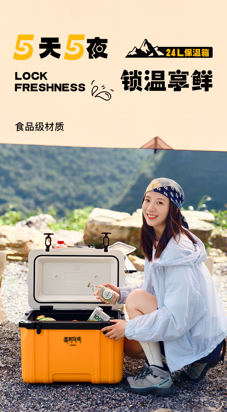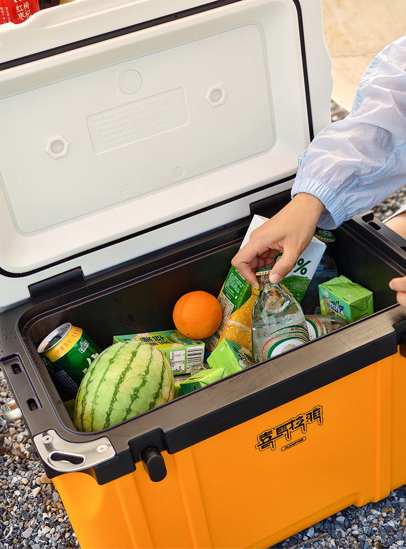 颜值很高,是很高级的橙色,养眼耐看,能放的容纳空间很大。保温效果确实好。露营很实用,一整天下来,饮料都是冰冰凉凉的,炎热的夏季,真的太实用了