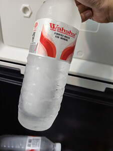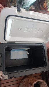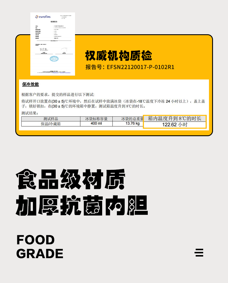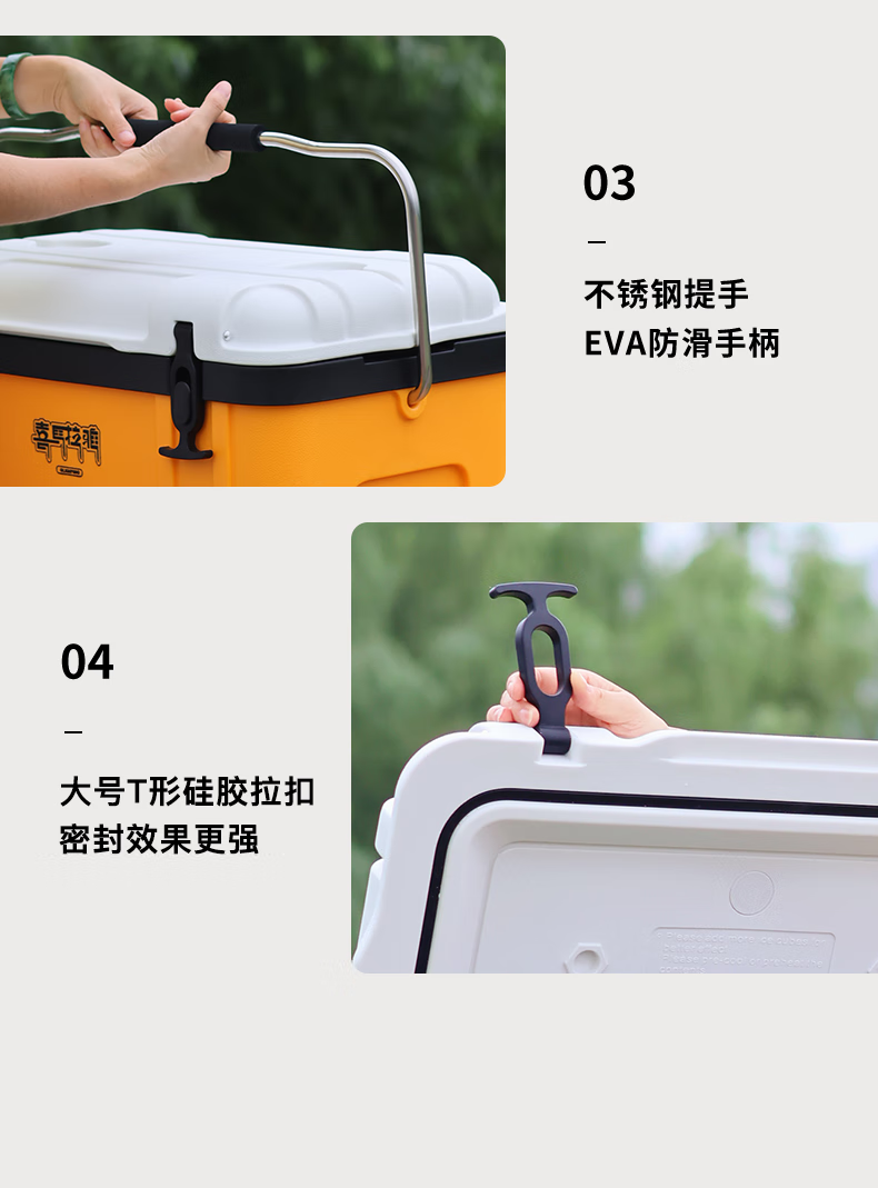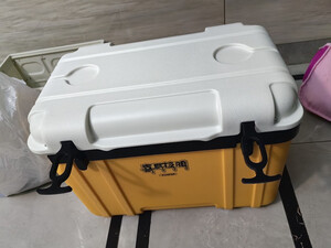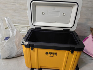 质感特别好,特结实,坐着当凳子都可以。 保温效果也已经实践过了,国庆节23-30°的气温,第一天7点开始到第三天5点,冰水融化情况如图,感觉抗个三四天问题不大的,第二天晚上开始还是空箱子在放冰,如果放的东西多冰冻时间还会延长些。 我也买了另一款一百多来对比,确实质感和保温效果不是一个档次的,推荐这个,一分钱一分货