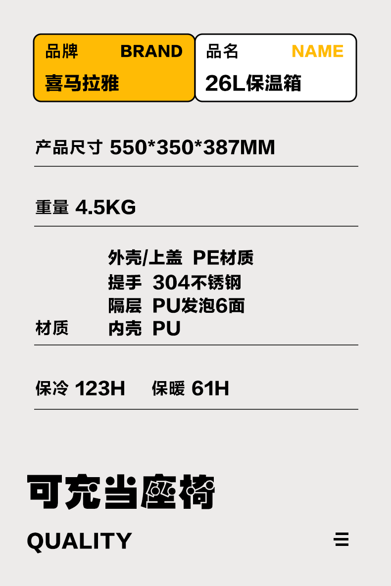 喜马拉雅露营保温箱冷藏箱商用钓箱摆摊车载保冷长时间冷藏保鲜户外冰箱 26L冰桶长效锁温26L【送5冰袋】