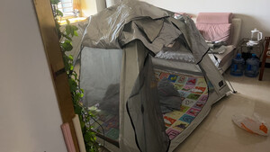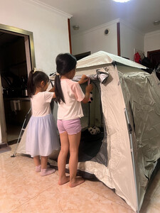 帐篷买回来就装上了,对我们新手来说很方便,孩子们也很喜欢,买回来没几天就参加了学校组织的帐篷节,头一天买第二天就送到了,京东很给力,很不错
