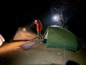 这个帐篷很方便,一个人全新搭建只花了不到五分钟;新手入非常友好。比如帐篷的头尾和干头的颜色一致,基本不容易出错。