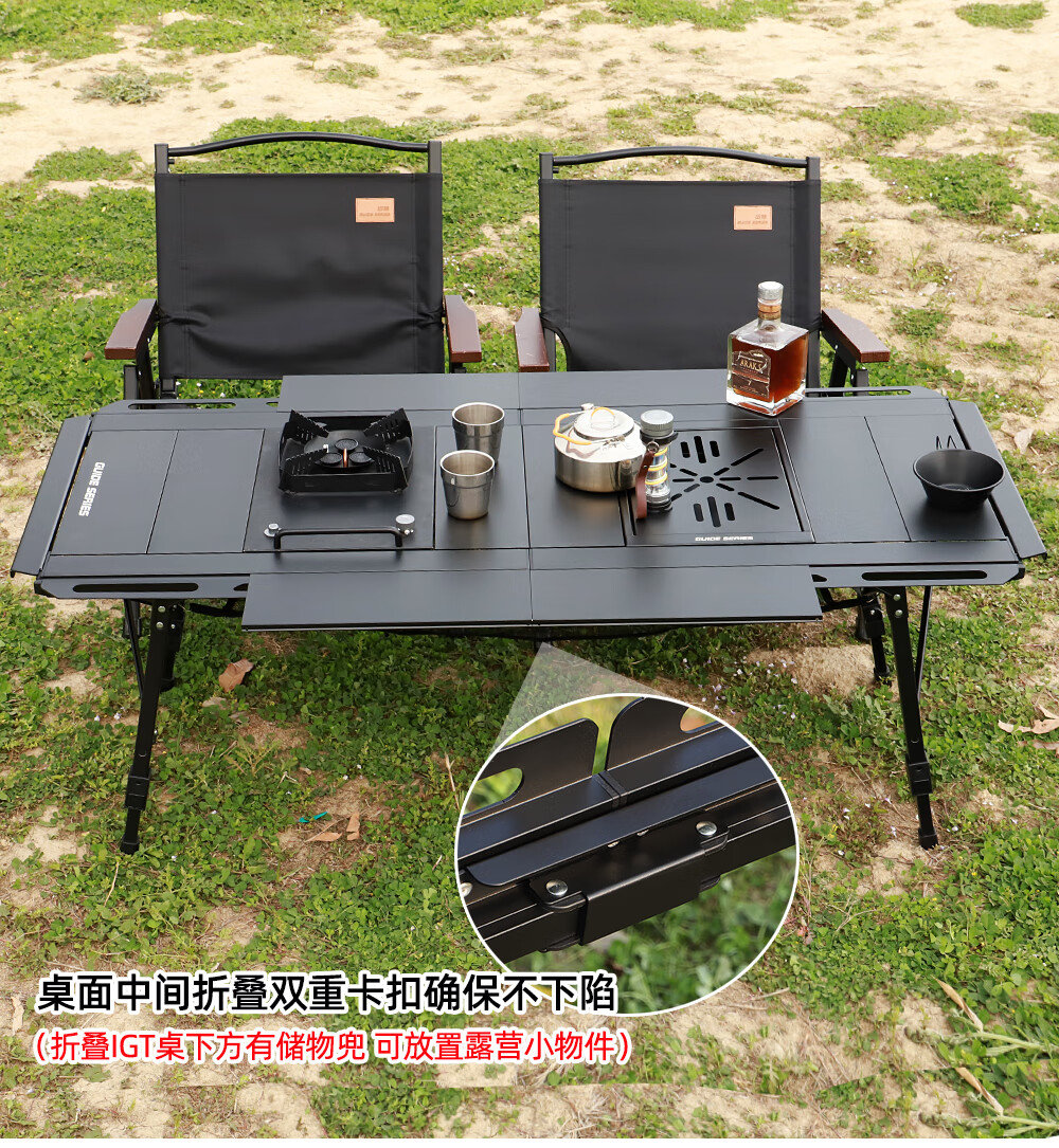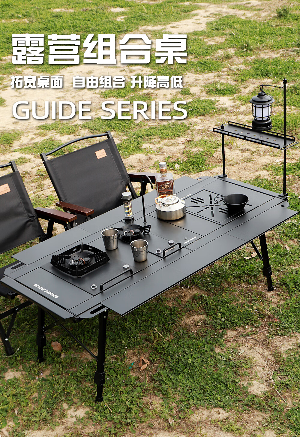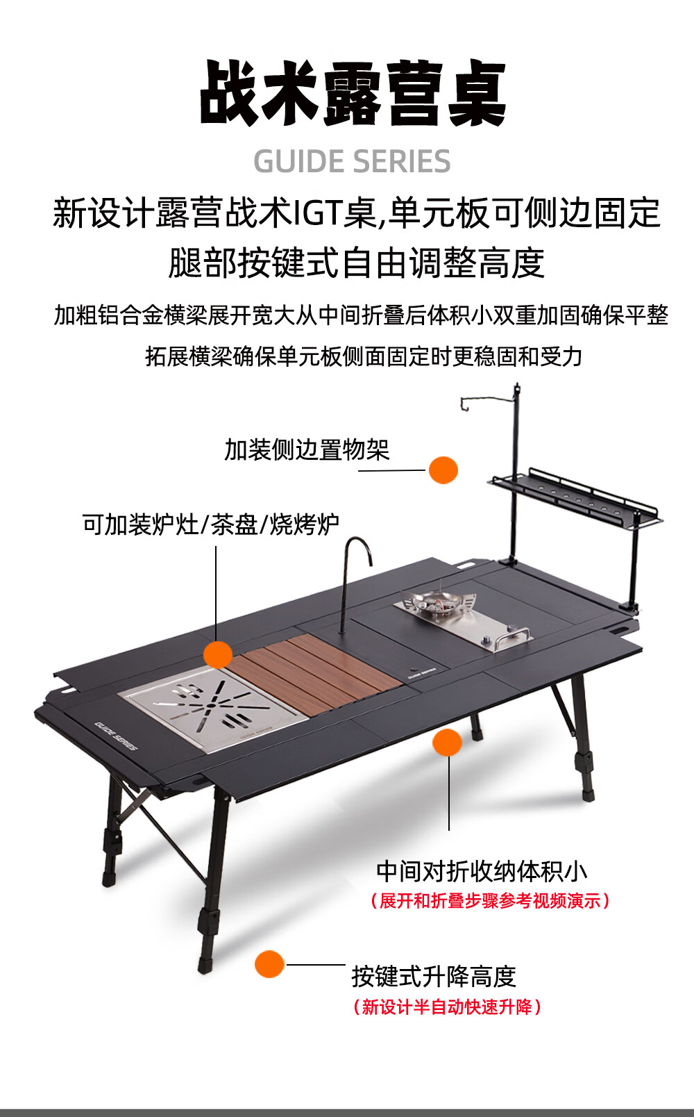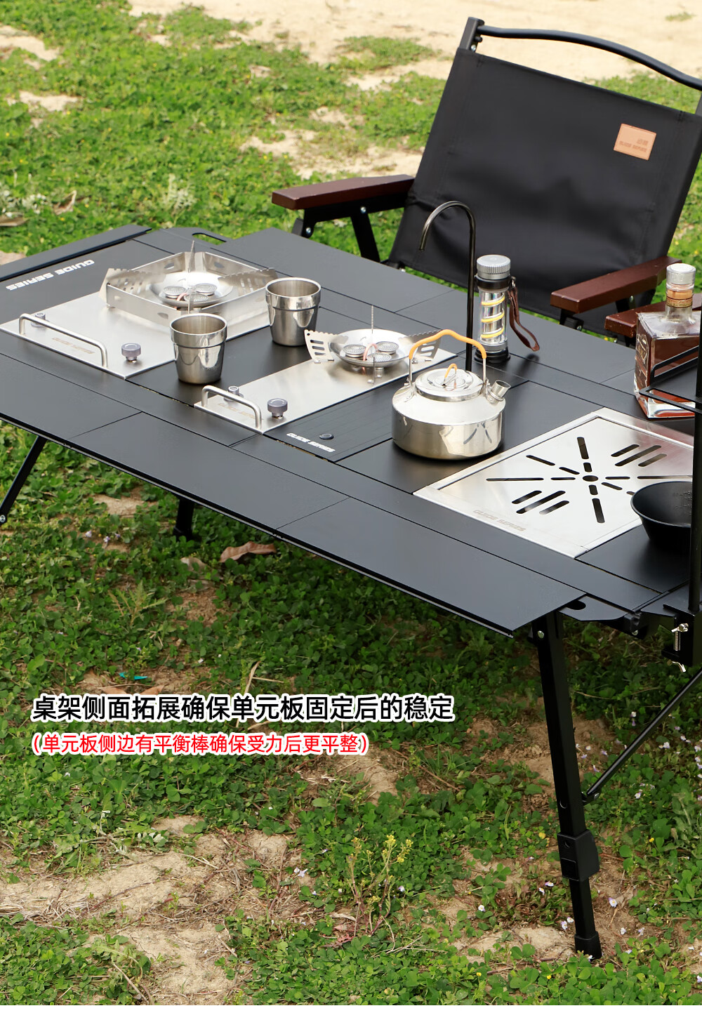 Guide Series户外露营铝合金五单元IGT桌野餐半自动升降桌可拓展折叠露营028桌 BL-028折叠IGT黑桌+黑炉+茶盘