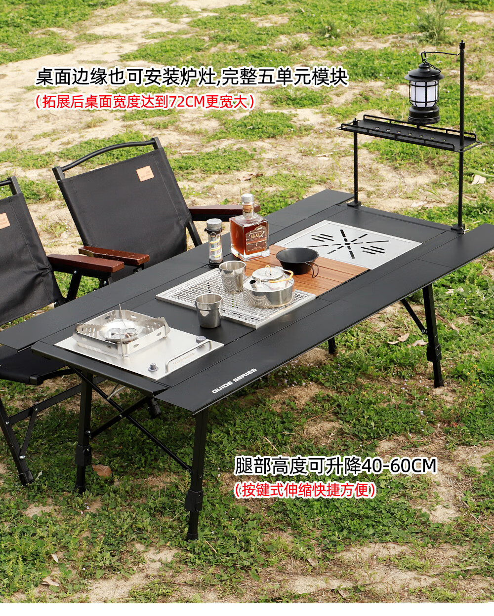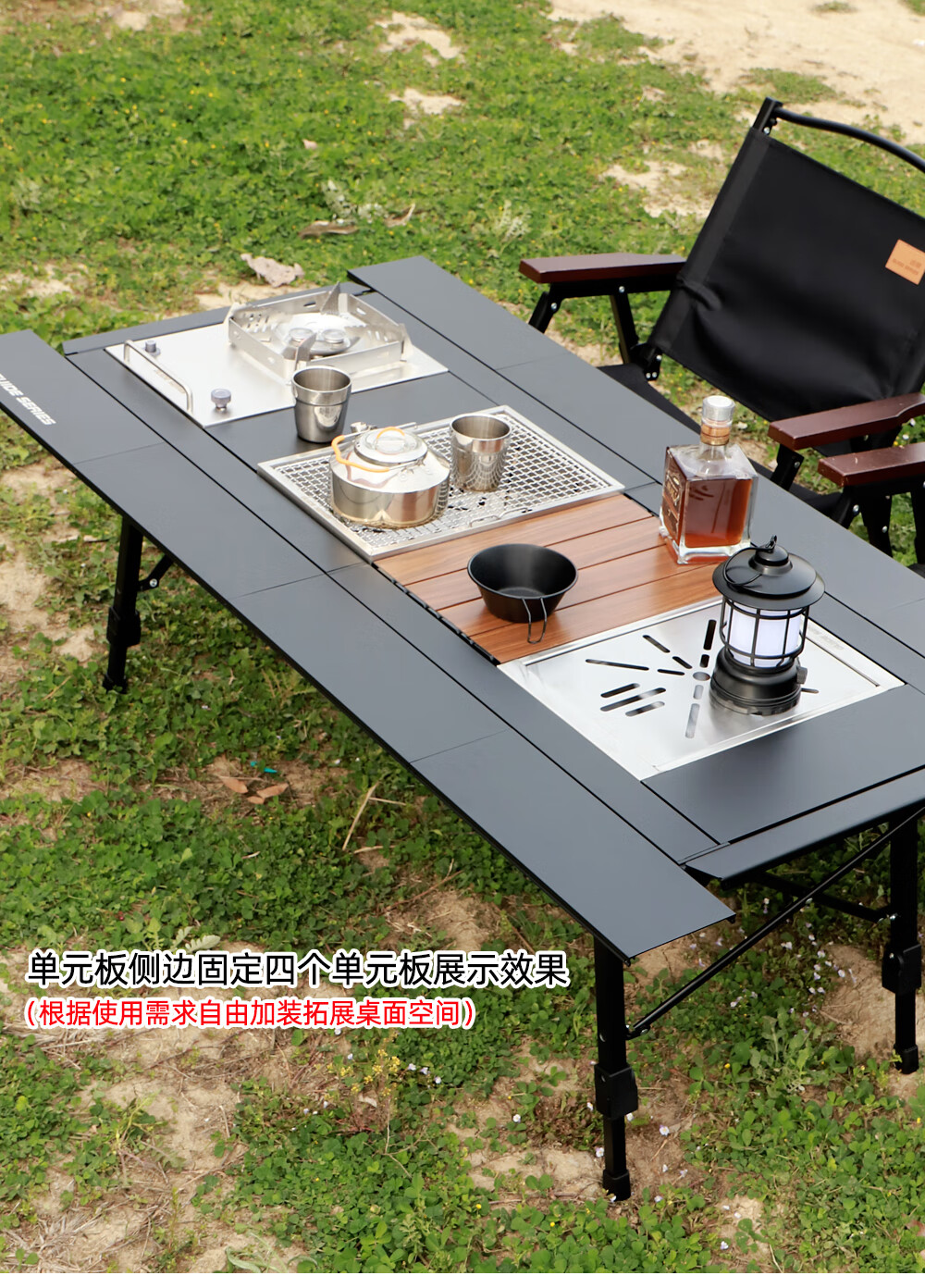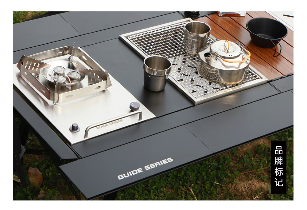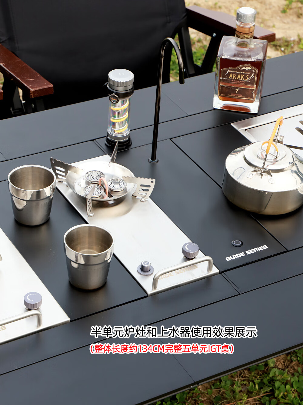Guide Series户外露营铝合金五单元IGT桌野餐半自动升降桌可拓展折叠露营028桌 BL-028折叠IGT黑桌+黑炉+茶盘