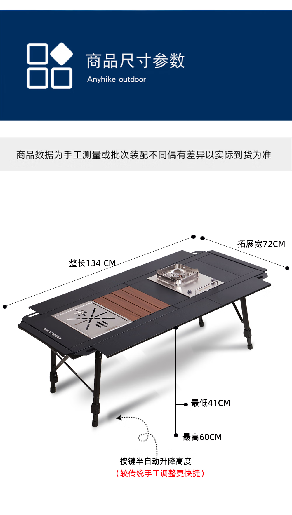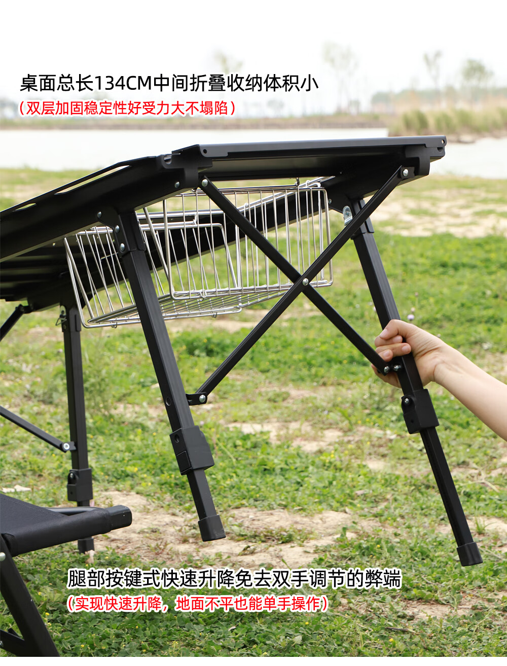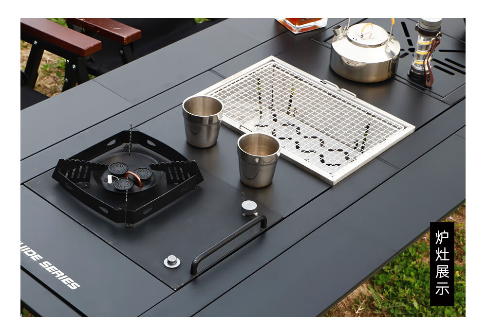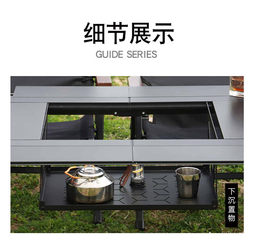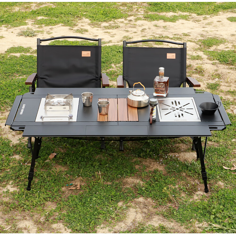Guide Series户外露营铝合金五单元IGT桌野餐半自动升降桌可拓展折叠露营028桌 BL-028折叠IGT黑桌+黑炉+茶盘