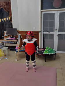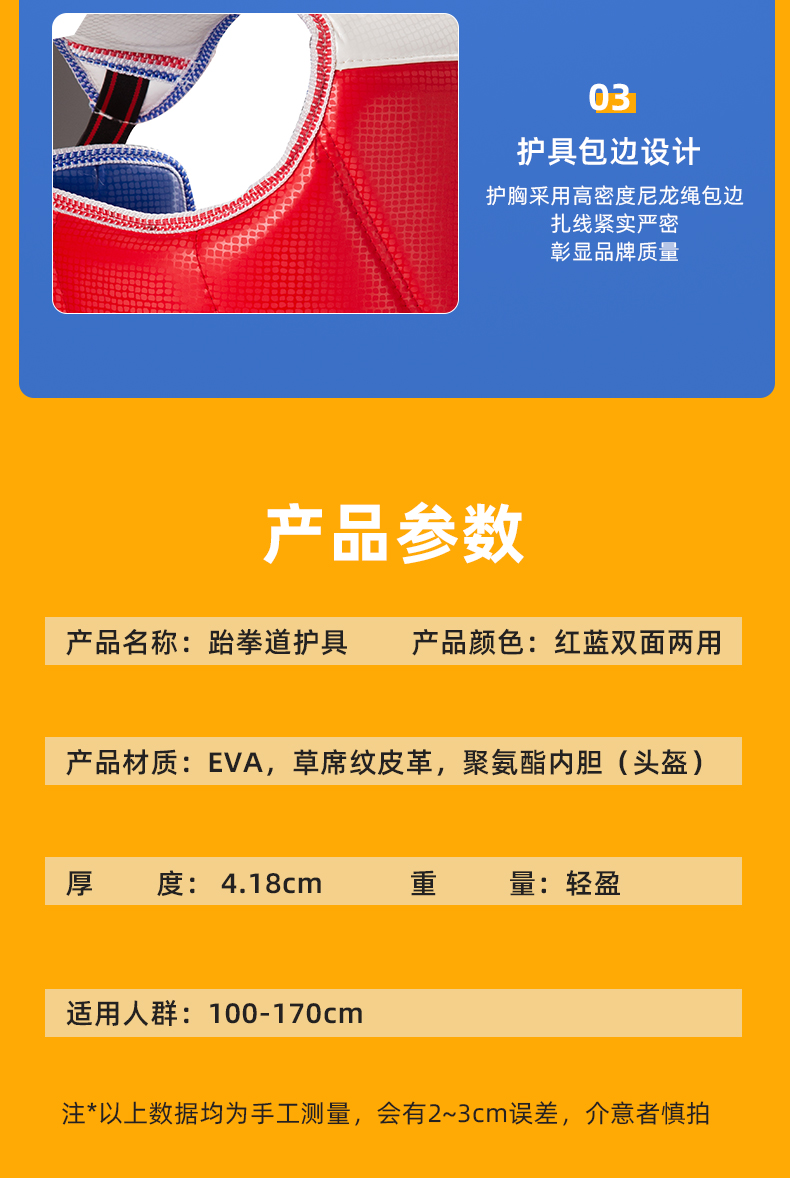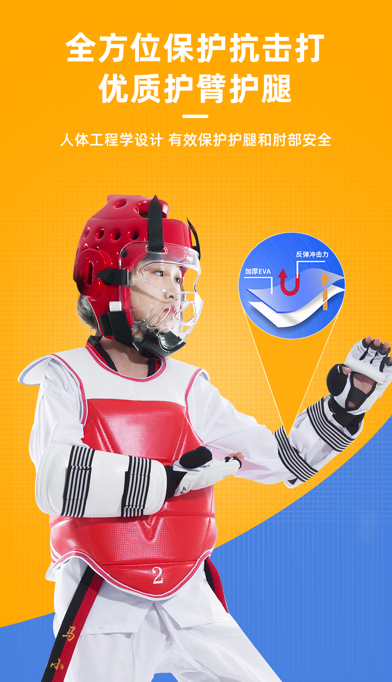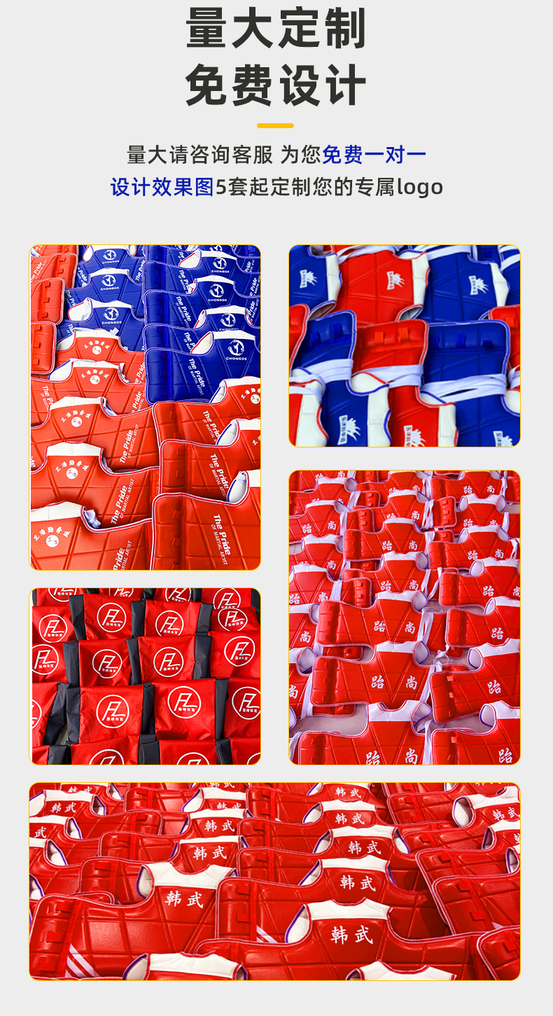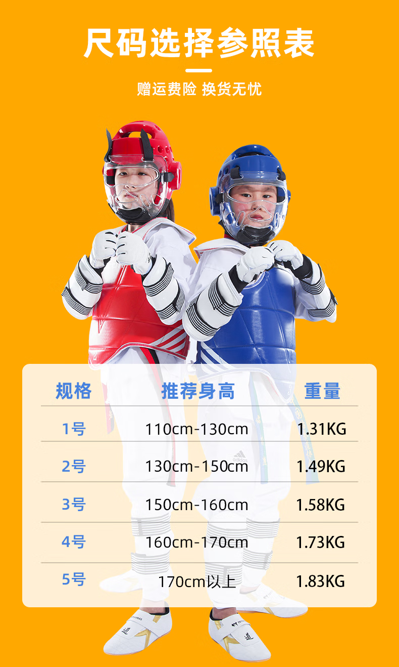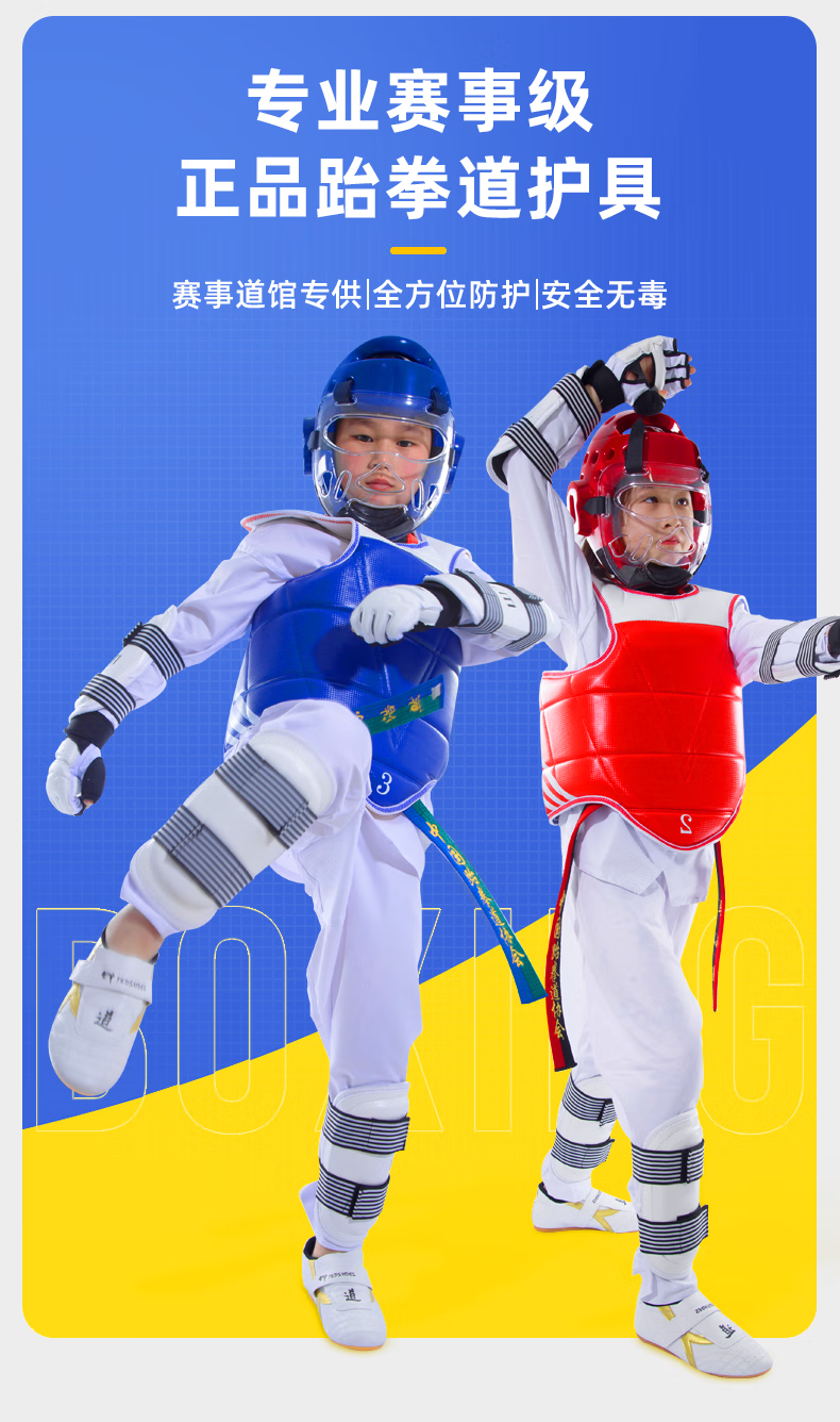 给孩子买的护具大小非常合适,孩子很喜欢用于跆拳道比赛,红兰两面都可以穿火炬一体,成型有效地保护孩子骨骼,值得大家推荐和购买。