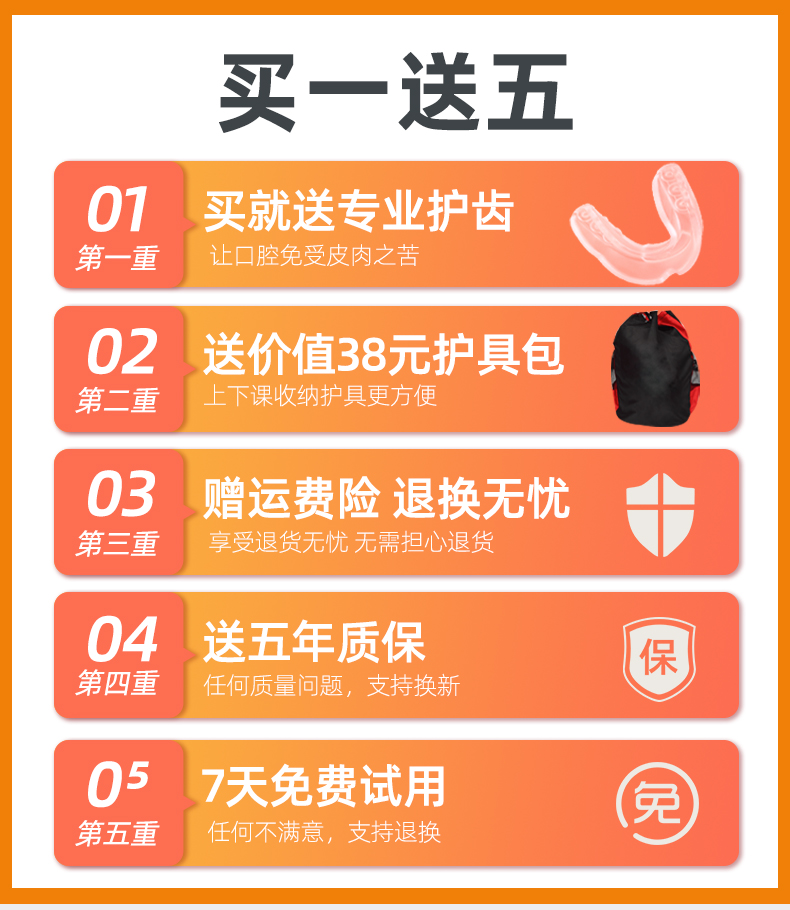 质量很好,大小合适 打开有点味道,放一会儿就好了 值得购买 快递是个大包裹,好在东西都是不怕压的,打开好好的。 需要自己安装头盔,还挺好安装的 赠送的牙套有点大,其他还不错,孩子很喜欢