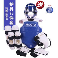 跆拳道护具全套mooto具儿童头盔训练六件套甲实战套装装备面 蓝色加厚-八件套 1号110-130limi男
