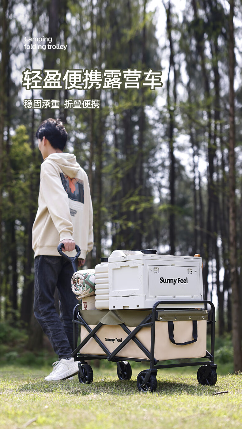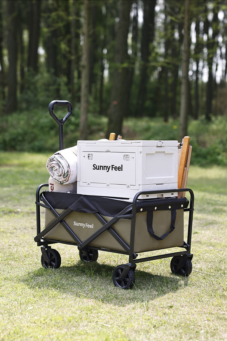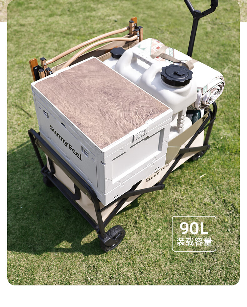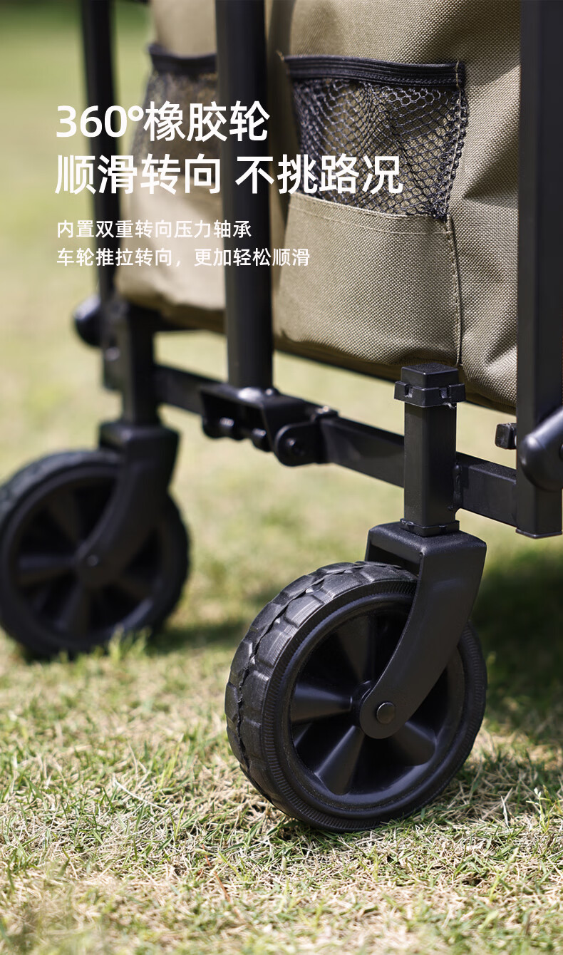 山扉山扉露营车可折叠户外小推车自驾游野餐车沙滩营地车买菜 90L 无刹车 卡其色橡胶万向窄轮
