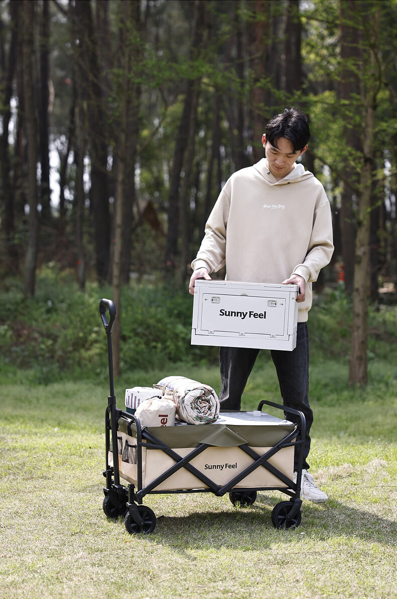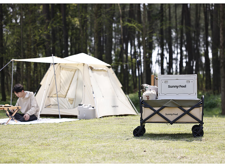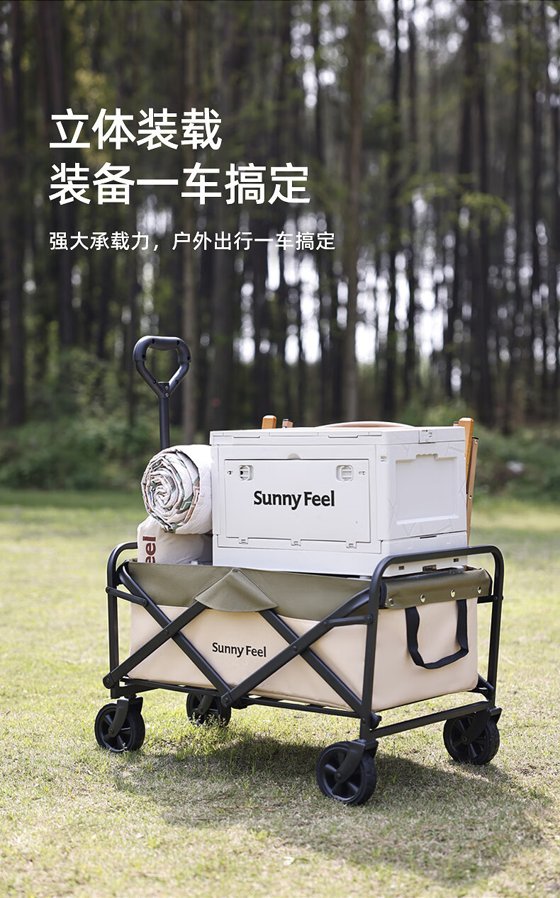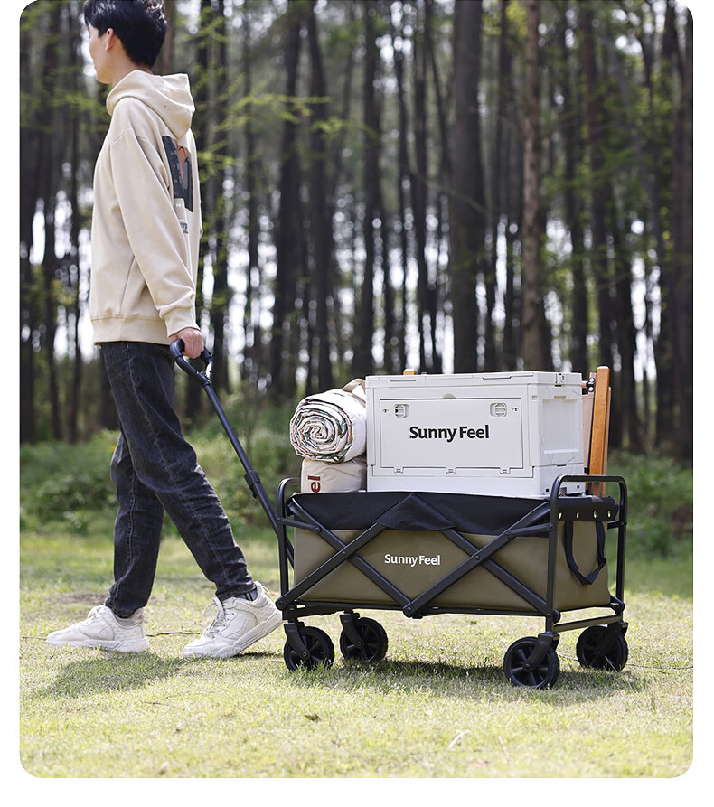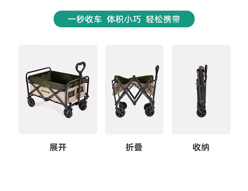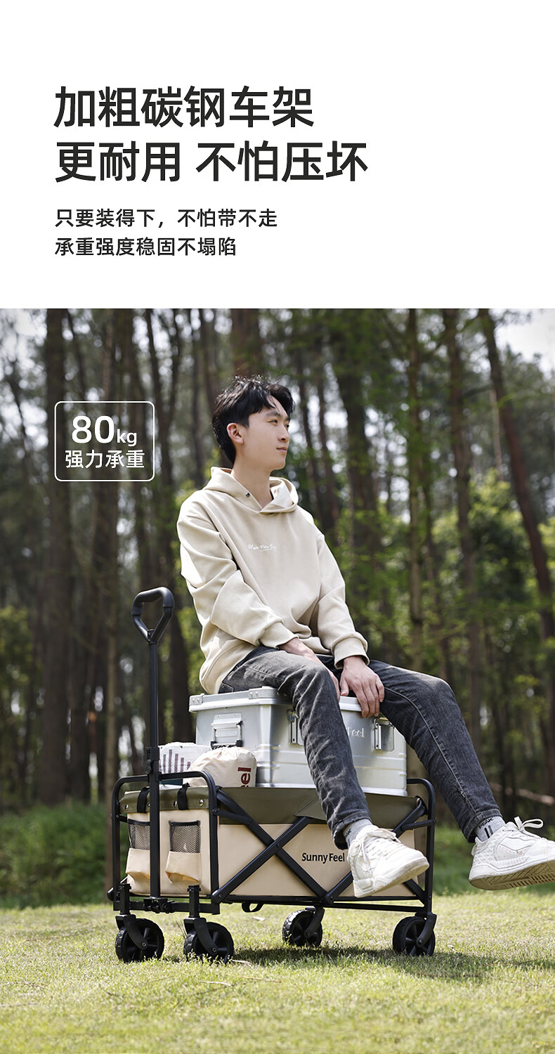 山扉山扉露营车可折叠户外小推车自驾游野餐车沙滩营地车买菜 90L 无刹车 卡其色橡胶万向窄轮