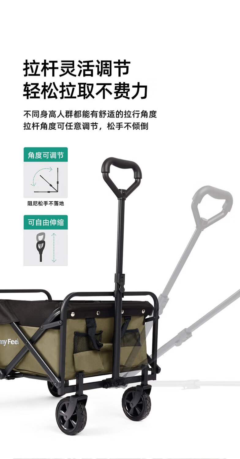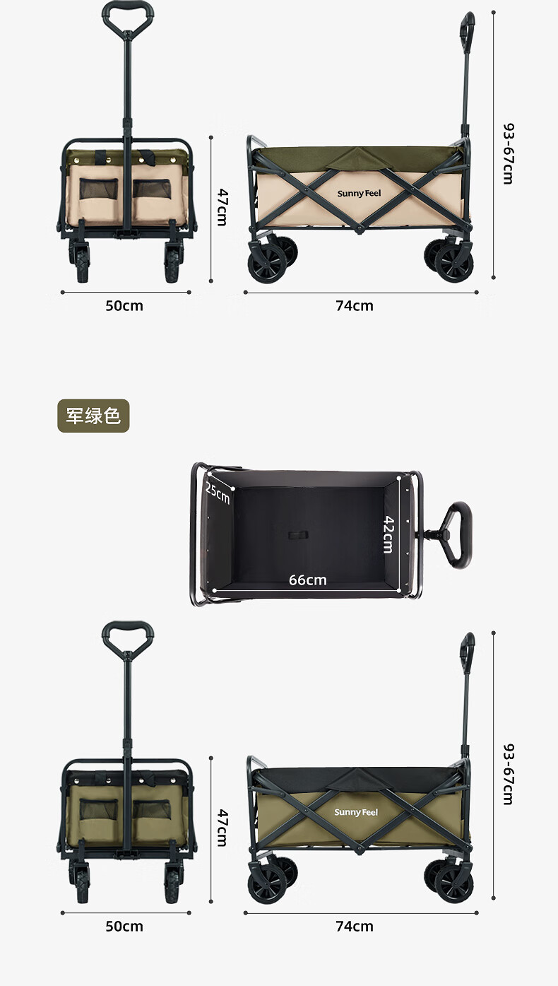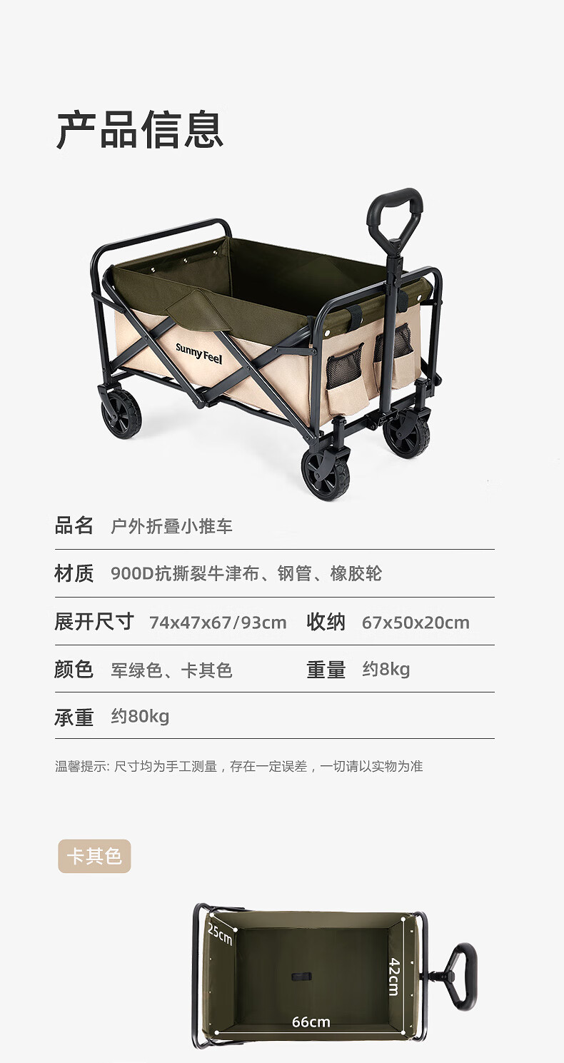 山扉山扉露营车可折叠户外拉车儿童营地小推车买菜拉年货小拖车快递车 拖斗飞机款卡其色【加大坦克轮】