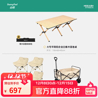 山扉山扉双面超轻蛋卷桌子全铝合金户外桌椅折叠露营便携野餐装备全套 原木色【双面全铝】轻翼滑轨桌