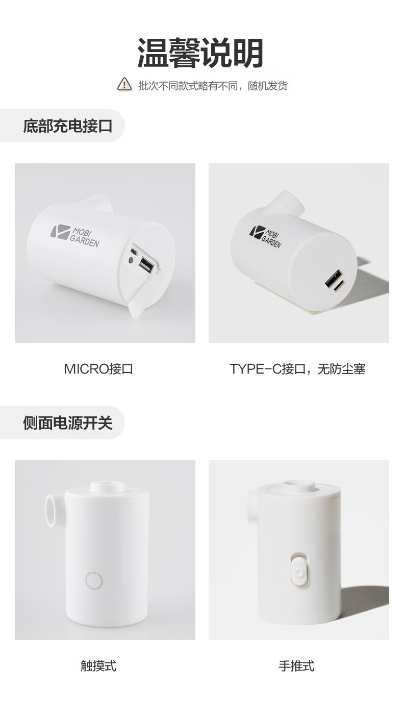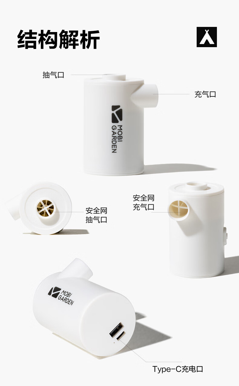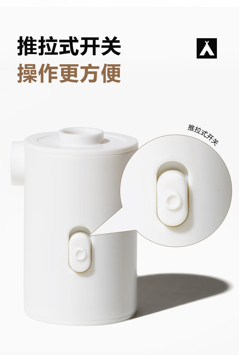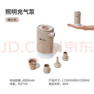 小巧精致,设计合理,除了充气,最关键的是可以抽气,在户外可以照明,光线3个档位可以调节,还可以当充电宝用,充气很快,抽气稍微慢一点,声音偏大,总体来说很满意