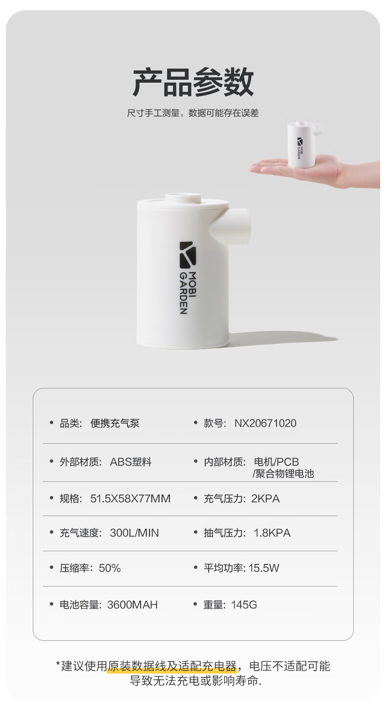 收货后用它打了一下充气床垫,充气速度快,外观设计精致好看,之前一直用人力充气,没想到牧高笛有这么好的电动打气泵,用它十分得意。