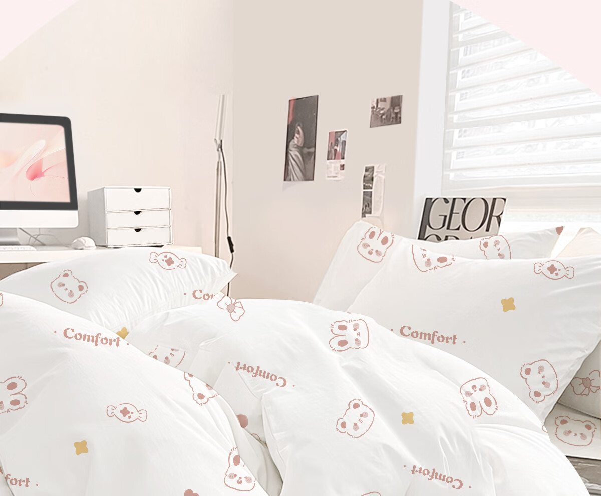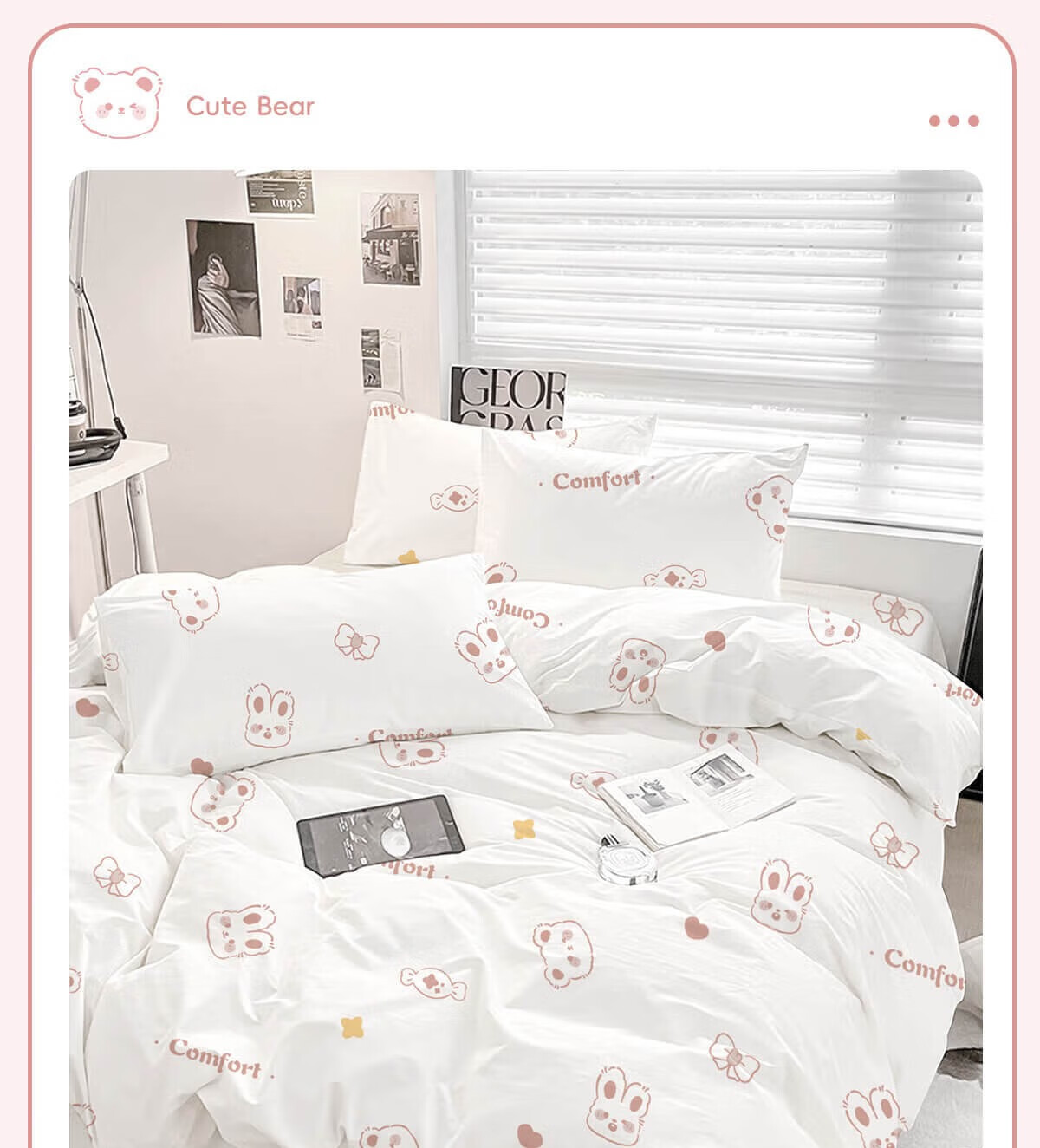 这款四件套看起来很可爱,而且价格很便宜,质量不错,带出去玩很方便,推荐购买