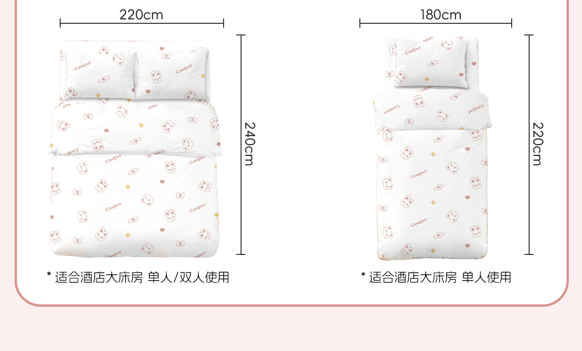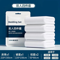 屿旅旅行一次性四件套床单被套罩枕套酒店床上用品双人三件套旅行配件 网格熊兔-纯白四件套 1包