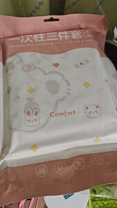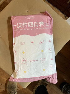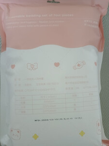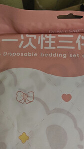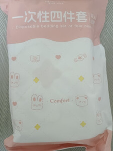 活动价购买的一次性四件套,活动非常的超值,压缩包装比较便携不占空间,无纺布厚度还可以,尺寸符合。使用很方便,生产日期也比较新