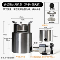 便携式不锈钢柴火炉户外露营折叠木柴气化炉内胆野炊旅行野外炉具 调速风机+加厚升级款18cm二折柴火炉