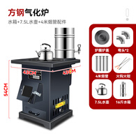 烽点加厚铸铁内胆气化无烟柴火灶室内农村柴煤两用取暖炉烤火冬天木柴 43方刚+水箱+水壶+4米管配件