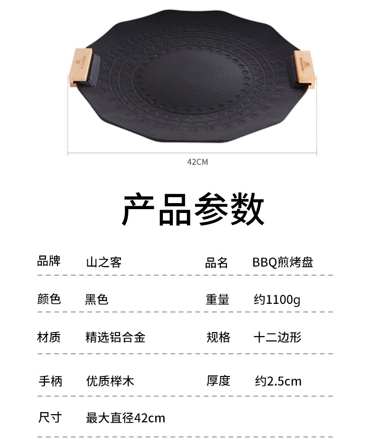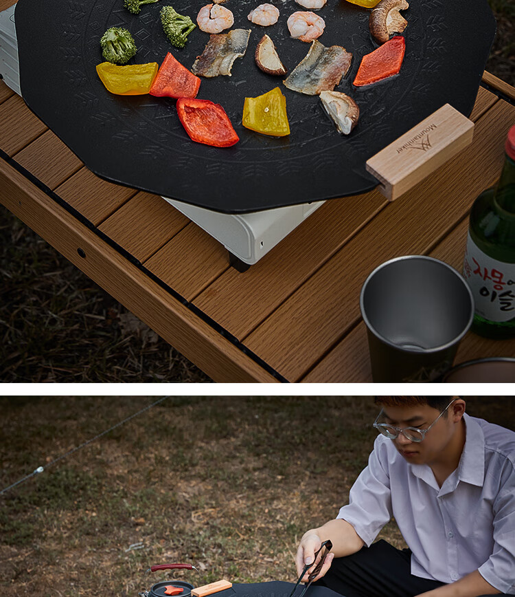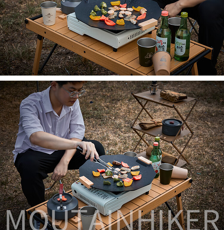 山之客露营烤盘户外铁板烧便携野餐烧烤盘麦饭石卡式炉BBQ烤盘 烤盘收纳包【咖色】