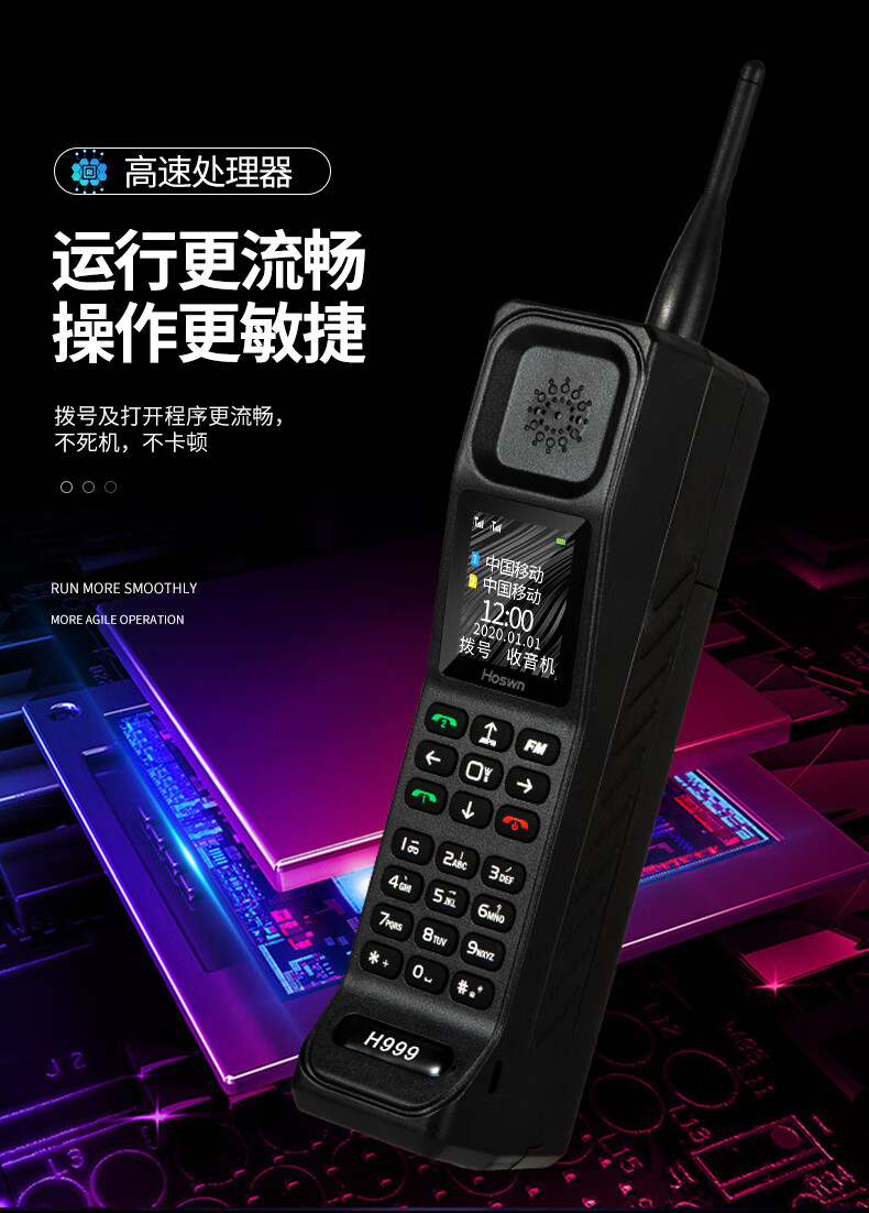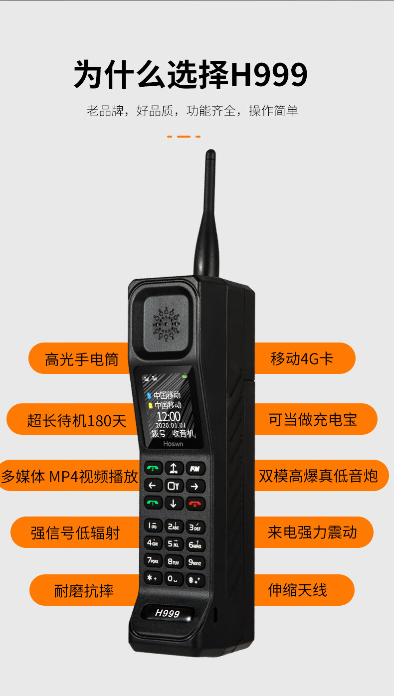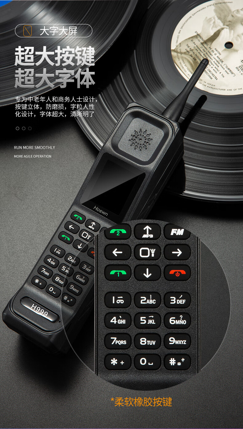 皓轩复古大哥大手机H9 重出江湖 全网通4G适合家用坐机备用机老人机双卡双待移动电话语超长待机30天 智能版 黑色【全网通4G版】可APP上网 霸气奢华