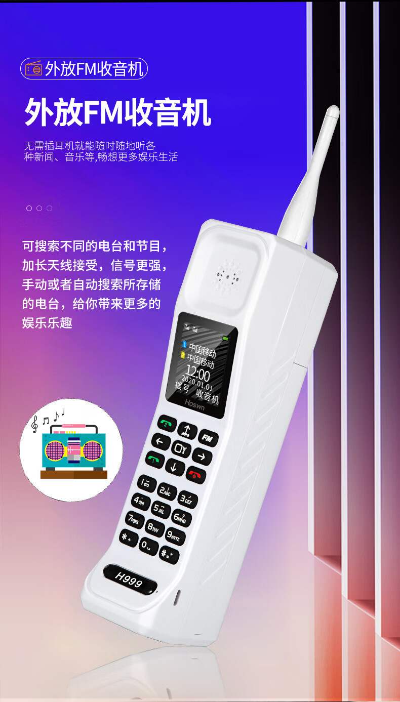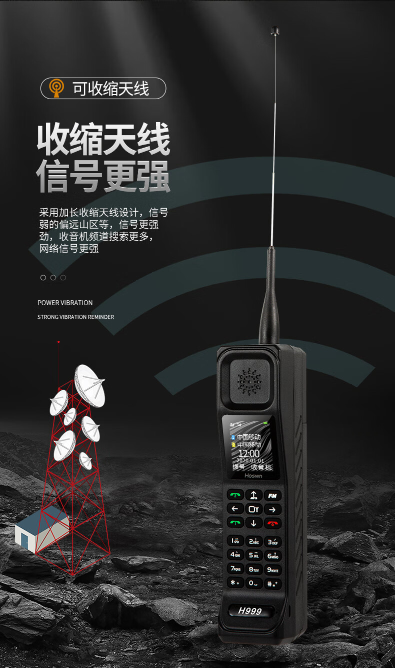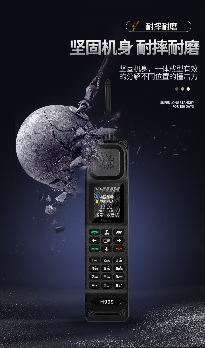 皓轩复古大哥大手机H9 重出江湖 全网通4G适合家用坐机备用机老人机双卡双待移动电话语超长待机30天 智能版 黑色【全网通4G版】可APP上网 霸气奢华