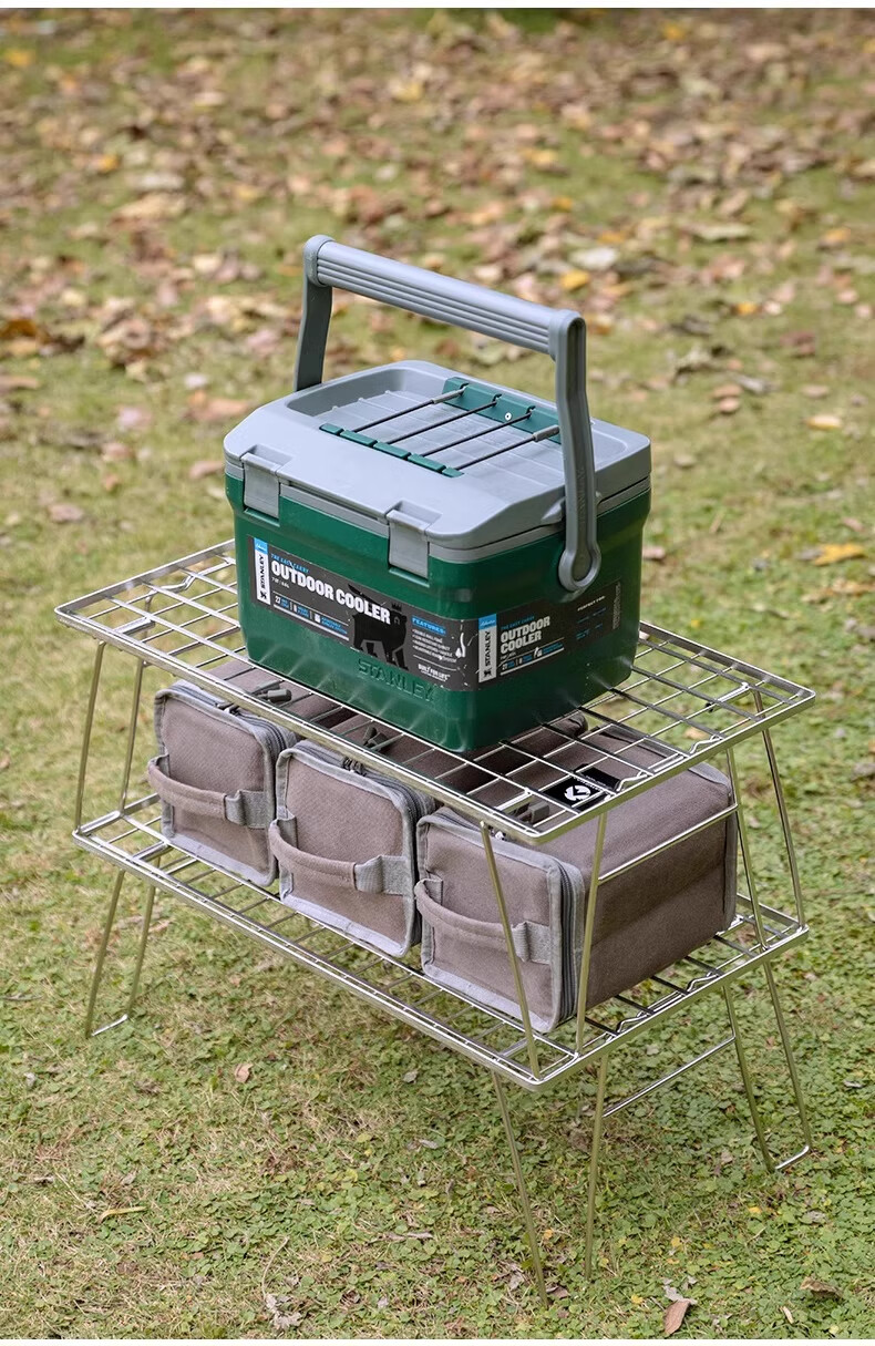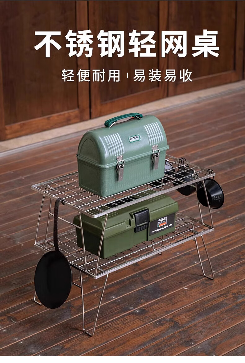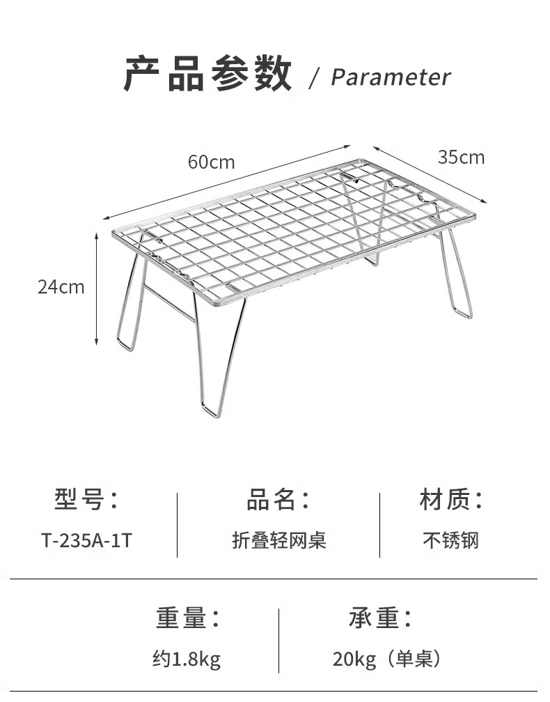 CAMPINGMOON柯曼新款不锈钢折叠网桌T-235A自驾游IGT户外轻量烧烤桌子置物架 T-235A折叠网桌