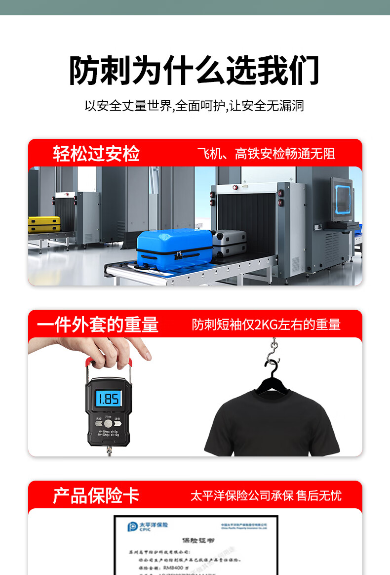 客服服务热情,防刺短袖做工精细,芯片保护范围很大, 很值这个价格,给你们点赞 安全性杠杠的