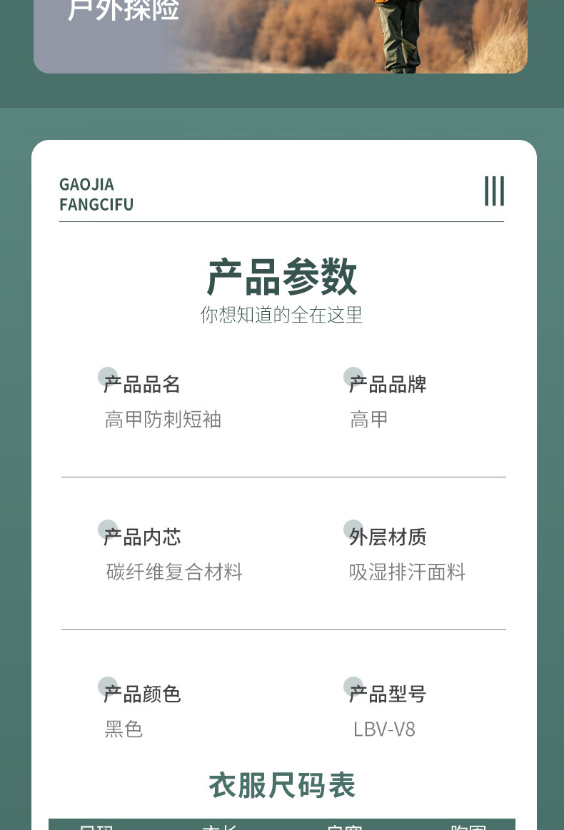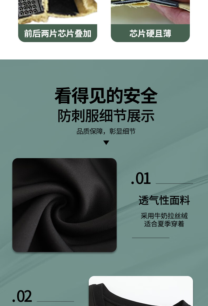 防刺短袖面料舒适,内芯耐磨,抗穿刺性强,可拆卸,清洗方便,日常防护实用舒适。
