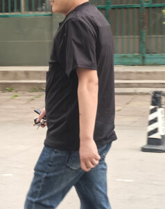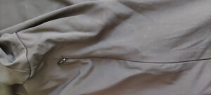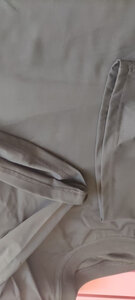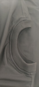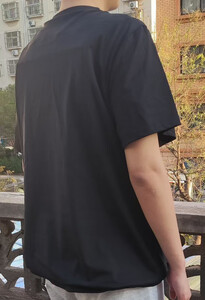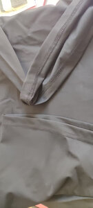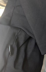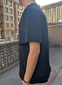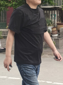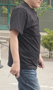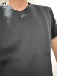 面料很轻薄,刚套到身上会有一点冰凉,穿一会儿就很舒服了,适合夏天穿,表面和普通的短袖一样,走在路上完全不担心被发现。 接缝处防刺布料有重叠.