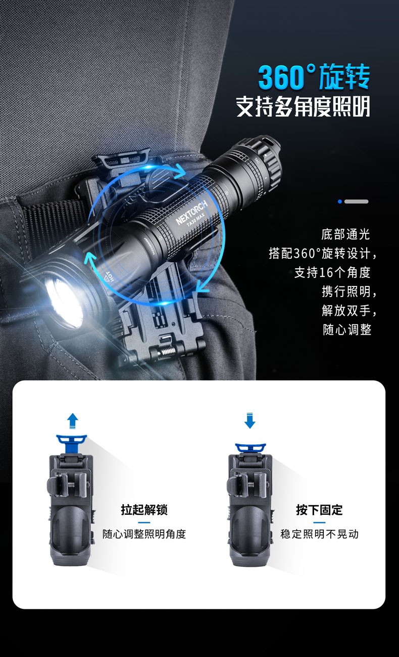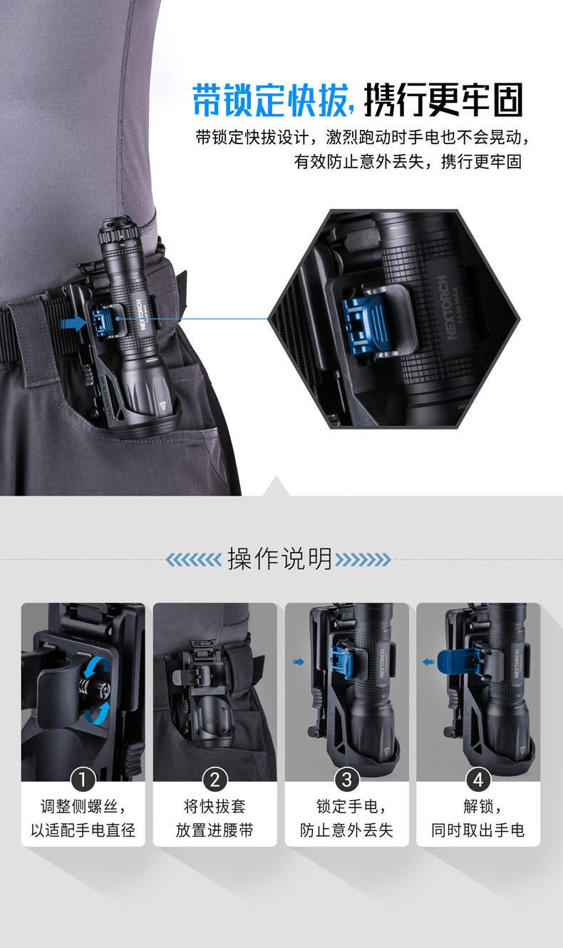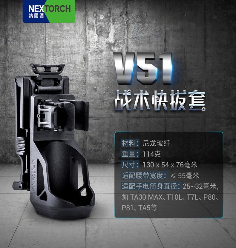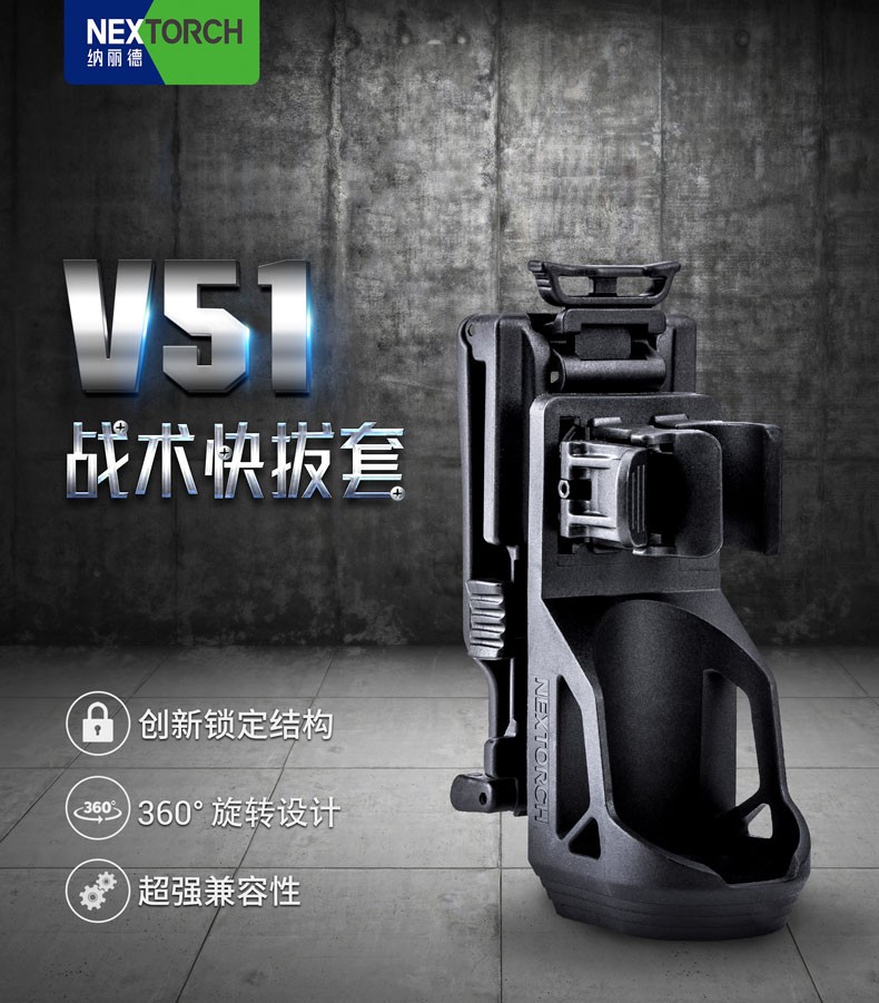 纳丽德(NEXTORCH) V51战术快拔电筒套360度旋转可锁定腰部便携通用配件 黑色