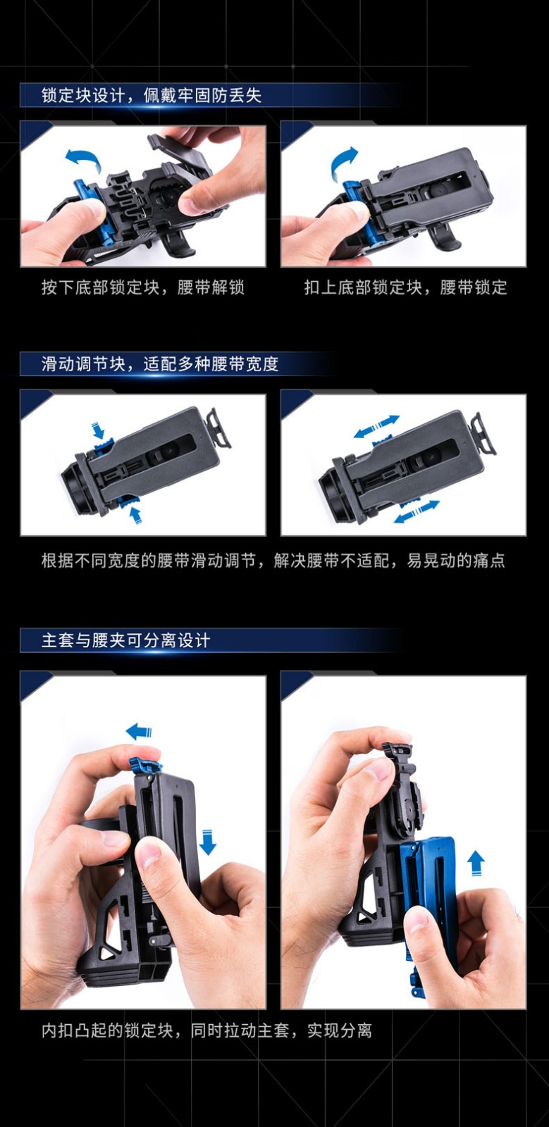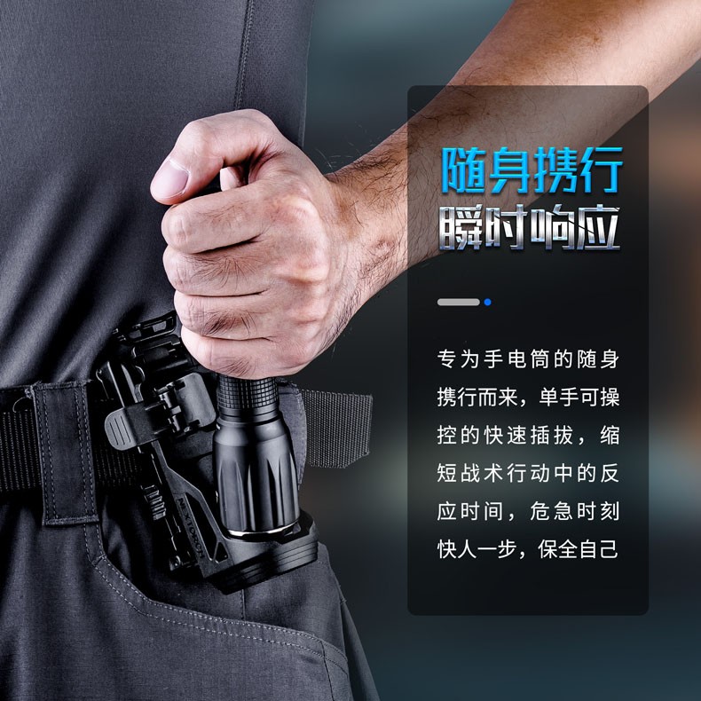 骆穂豆户外便携手电快拔360度旋转腰挂便携强光多功能黑色手电筒套. 黑