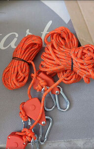 这款缆风绳设计的非常好 两边都带挂钩用起来非常方便 滑轮设计省力同时还很快速 搭设天幕太好用了 已经把所有的老款缆风绳都替换成这个了 用起来非常顺手!省心省力!强烈推荐需要的朋友购买!