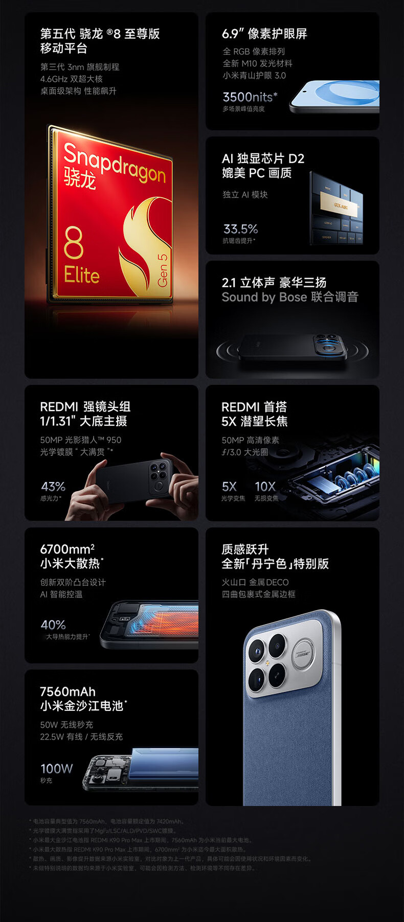 小米(MI)红米 REDMI K90 Pro Max 第五代骁龙8至尊版 7560mAh大电池 BOSE联合调音新品红米5G音乐游戏手机 丹宁色 12+512GB 官方标配