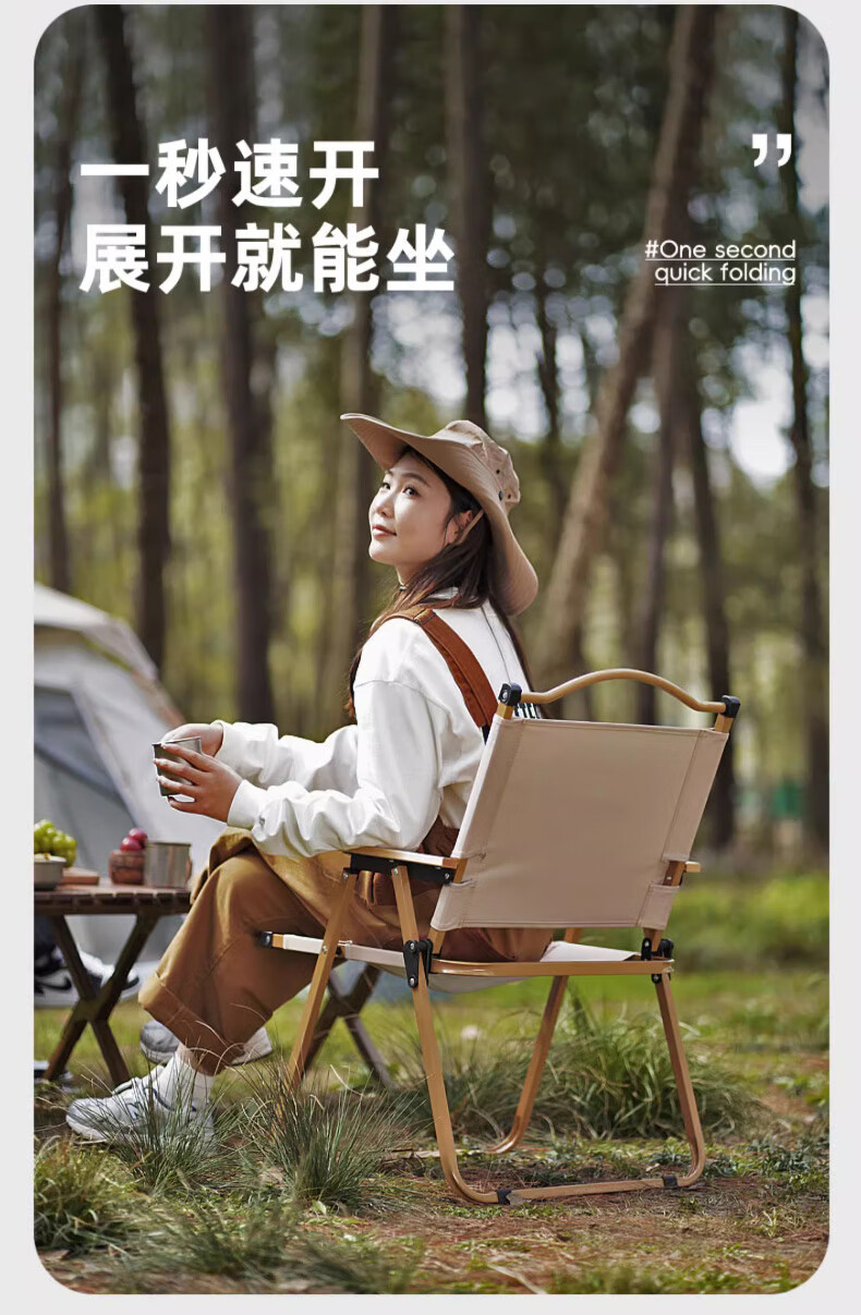 清系 户外折叠椅克米特椅露营椅子户外椅子折叠便携露营 沙滩椅 【树脂扶手碳钢款】大号卡其色
