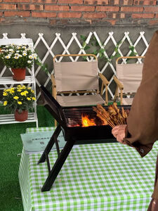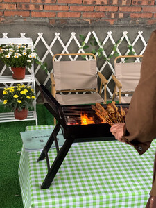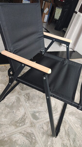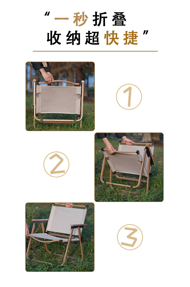 岩合户外折叠椅 便携式克米特椅露营钓鱼凳子野餐装备椅 露营桌椅 深黑色-特大号【加厚木质扶手】