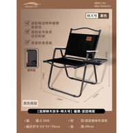 北岳户外折叠椅子便携野餐克米特椅轻钓鱼露营用品装备椅沙滩野外桌椅 【榉木扶手-特大号+置物盘】曜黑
