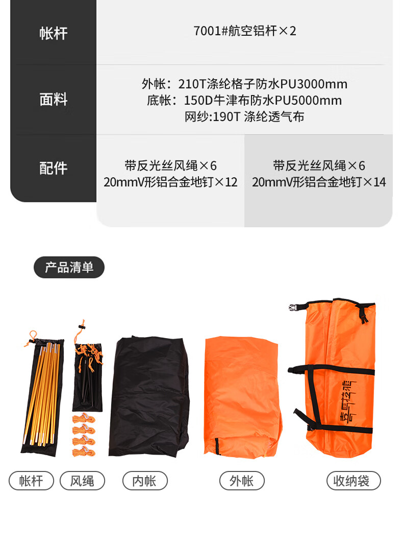 喜马拉雅冬季防寒帐篷户外徒步摩旅露营加厚防雨过夜登山套装 山旅2-3人帐 登山露营2人过夜套装2