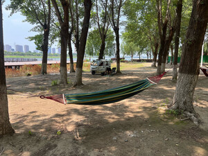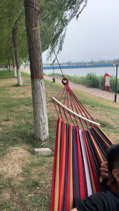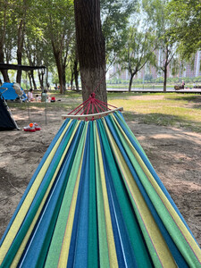 出去露营的时候总是有人在旁边卖吊床,也有人在旁边用吊床,一直想买一个,看了看这里的价格还不错,买了一个,结果质量也不错,非常好用