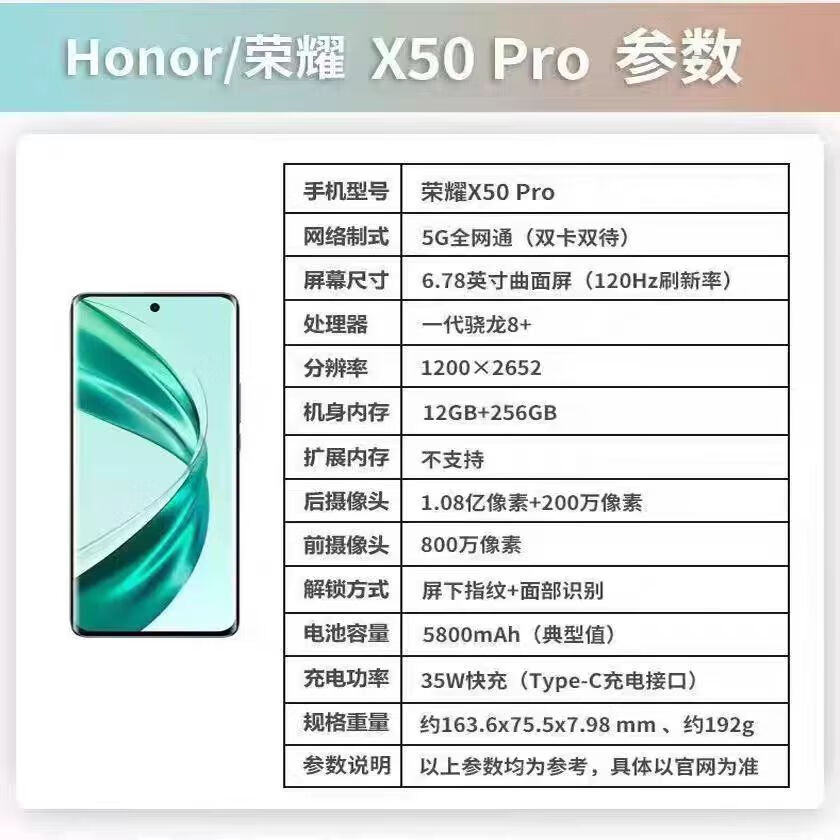 荣耀X50Pro 新款5G手机骁龙8+旗舰芯片5800mAh大电池NFC曲面屏 补贴机 苍山绿
