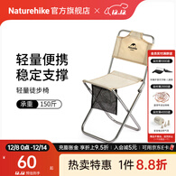 Naturehike挪客山见折叠靠背徒步凳户外野餐露营耐磨铝合金休闲椅小马扎便携 卡其色(承重约150斤)